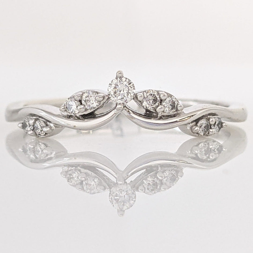 14K WHITE .09 CARAT TOTAL WEIGHT SI2 I DIAMOND ROUND (9) ESTATE CURVED BAND 1.9 GRAMS