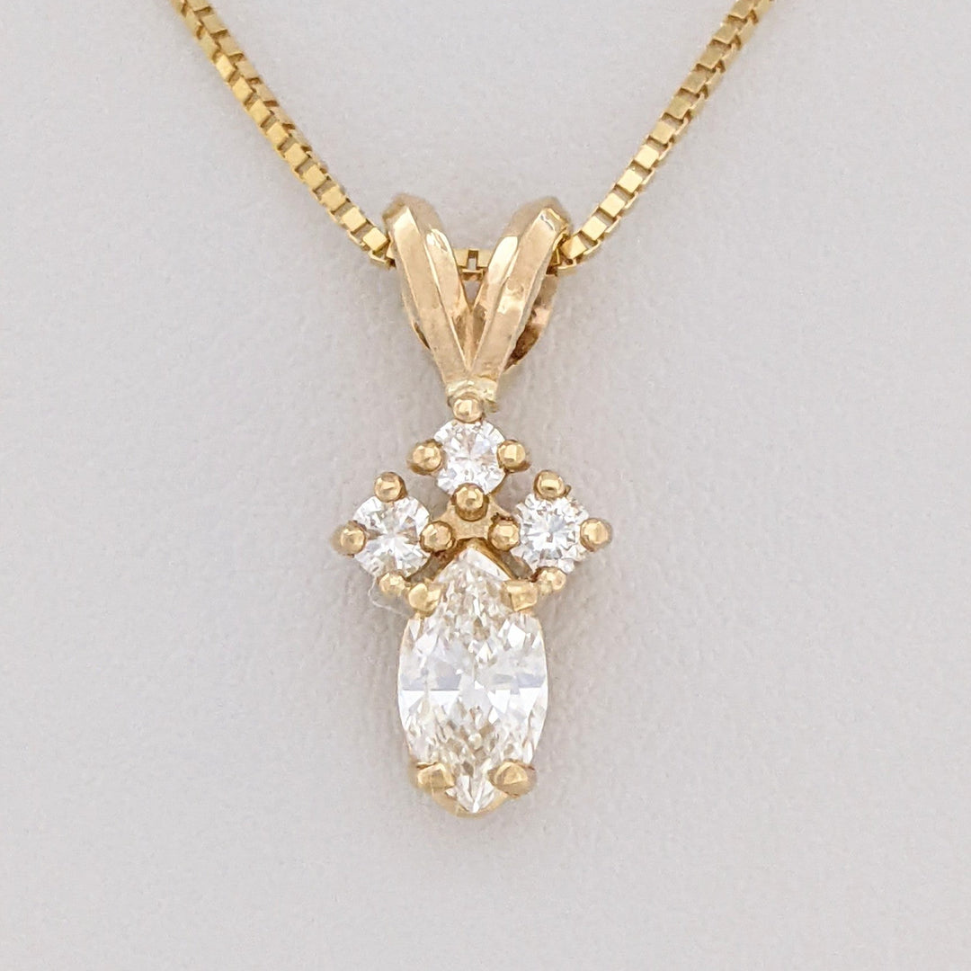 14K .38 CARAT TOTAL WEIGHT VS2-SI2 H DIAMOND MARQUISE (1) ROUND (3) ESTATE PENDANT & CHAIN 2.2 GRAMS