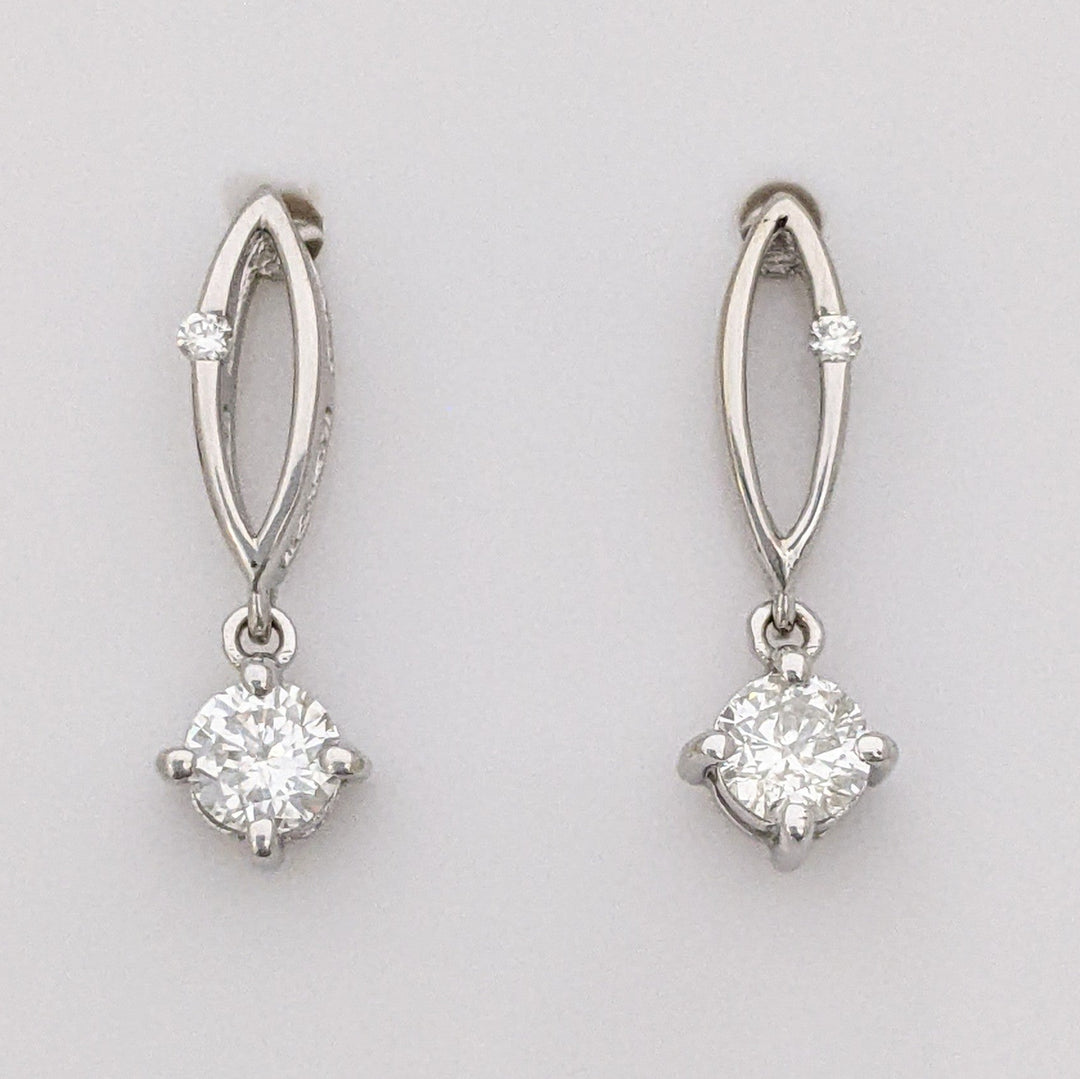 14K WHITE .39 CARAT TOTAL WEIGHT DIAMOND ROUND (54) DROP STYLE ESTATE EARRINGS 1.0 GRAMS