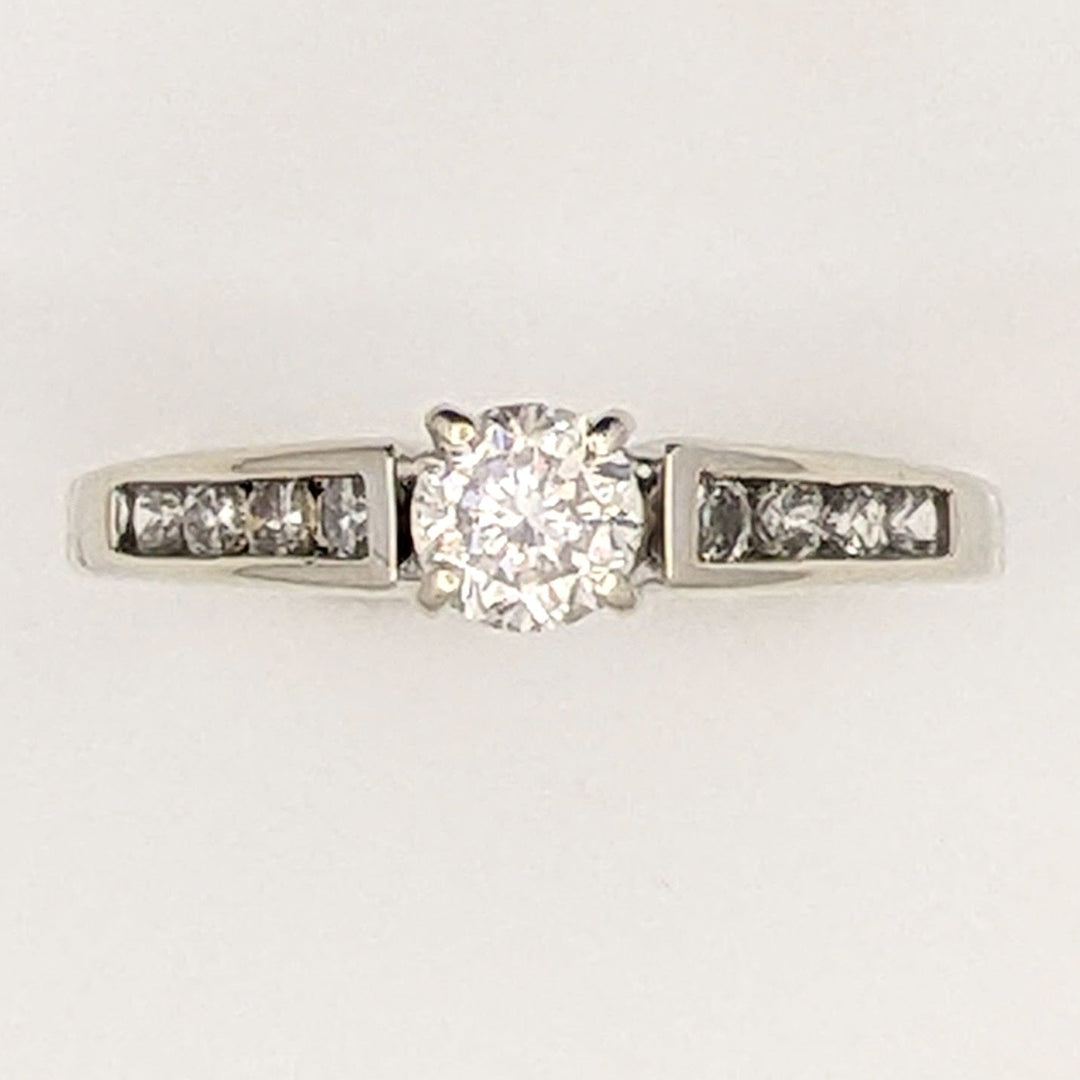10K WHITE .23 CARAT TOTAL WEIGHT SI1 G DIAMOND PRINCESS CUT (1) ROUND (16) ESTATE RING/BAND 4.9 GRAMS