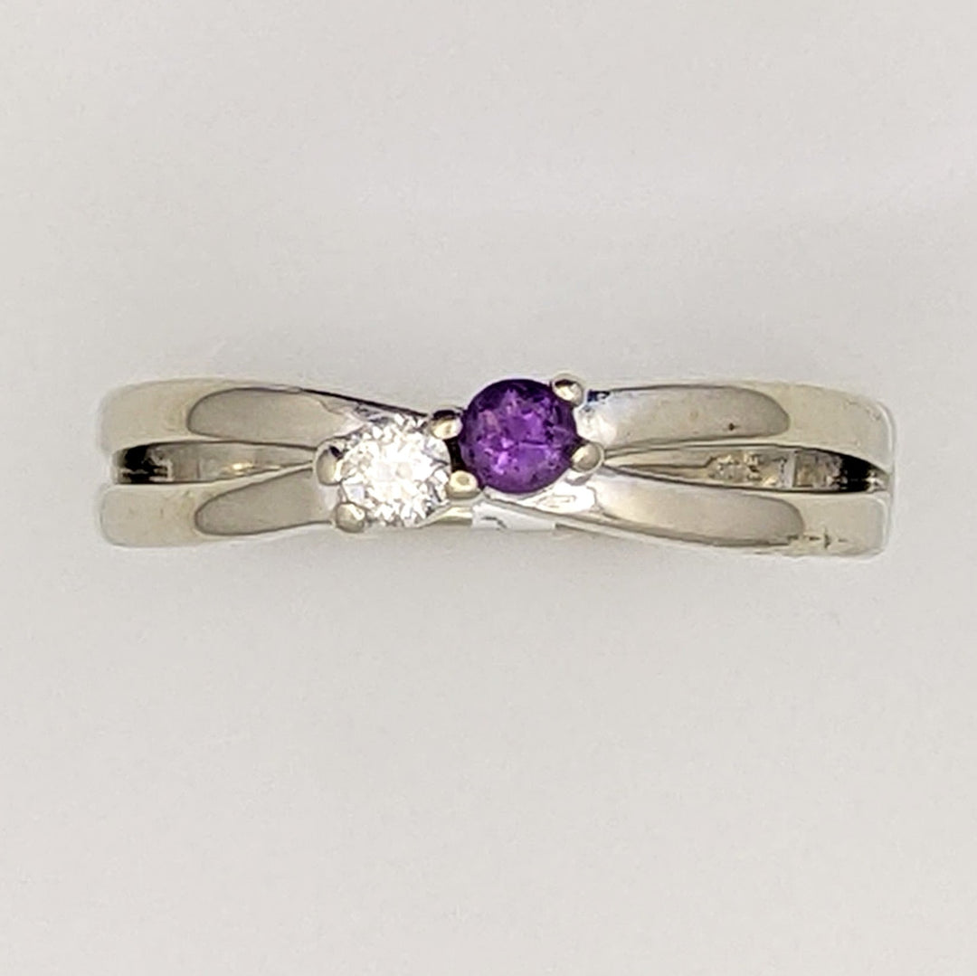 14K WHITE .08 CARAT TOTAL VS2 I DIAMOND ROUND (1) AMETHYST 2.8MM ROUND (1) ESTATE RING 4.2 GRAMS