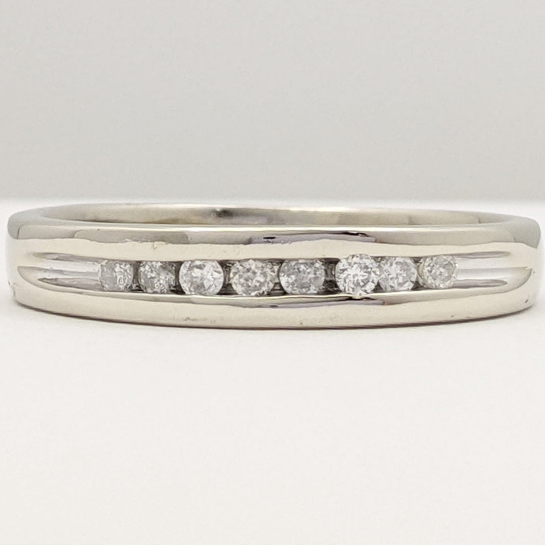 10K WHITE .25 CARAT TOTAL WEIGHT I1 H DIAMOND ROUND (8) ESTATE CHANNEL BAND 5.0 GRAMS