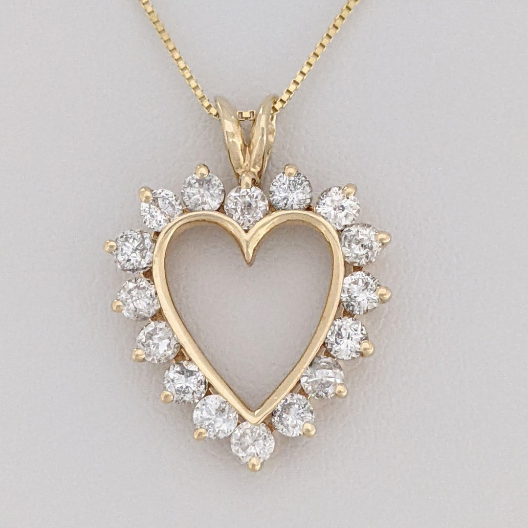 14K .80 CARAT TOTAL WEIGHT I1 H DIAMOND ROUND (16) ESTATE HEART PENDANT & CHAIN 2.7 GRAMS