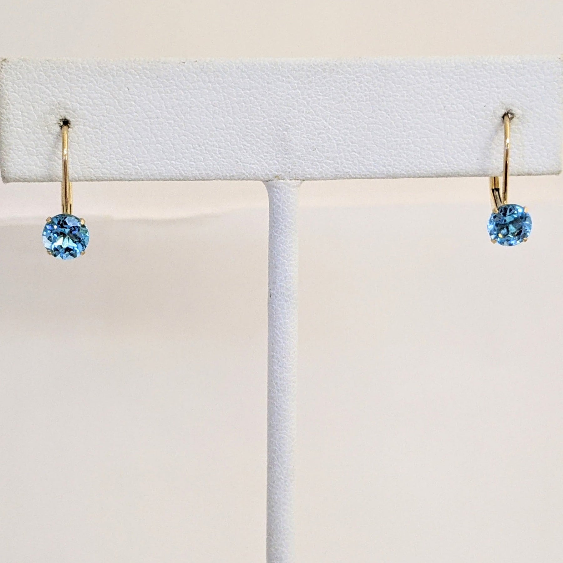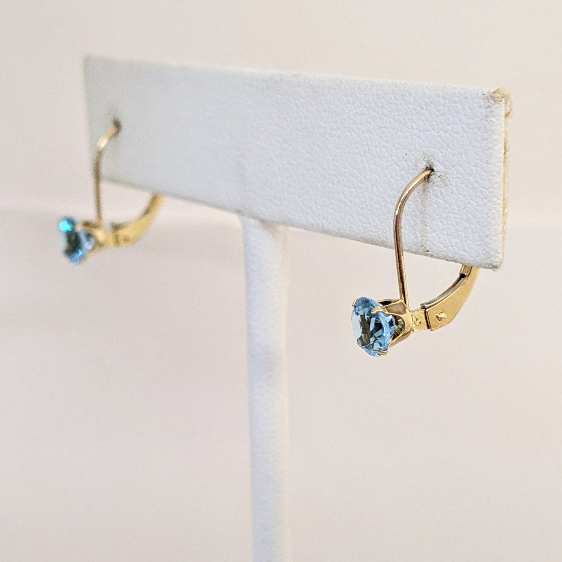 10K BLUE TOPAZ ROUND 5MM ESTATE LEVERBACK EARRINGS 0.8 GRAMS