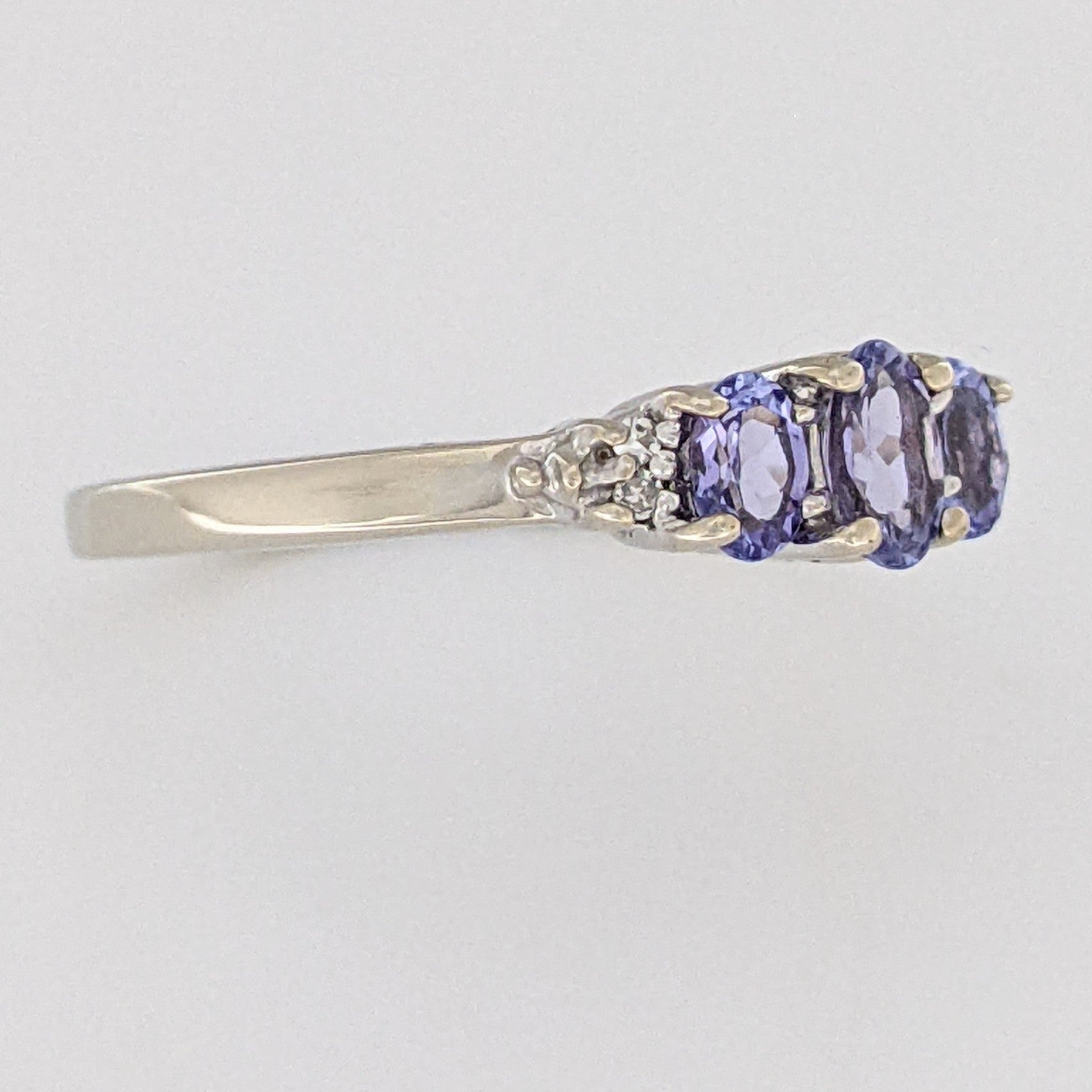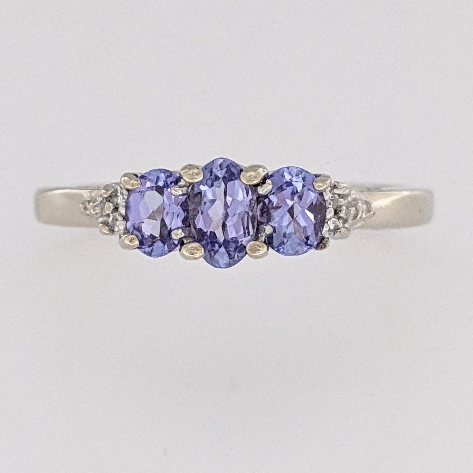 10K TANZANITE OVAL (3) WITH (4) MELEE ESTATE RING 2.3 GRAMS