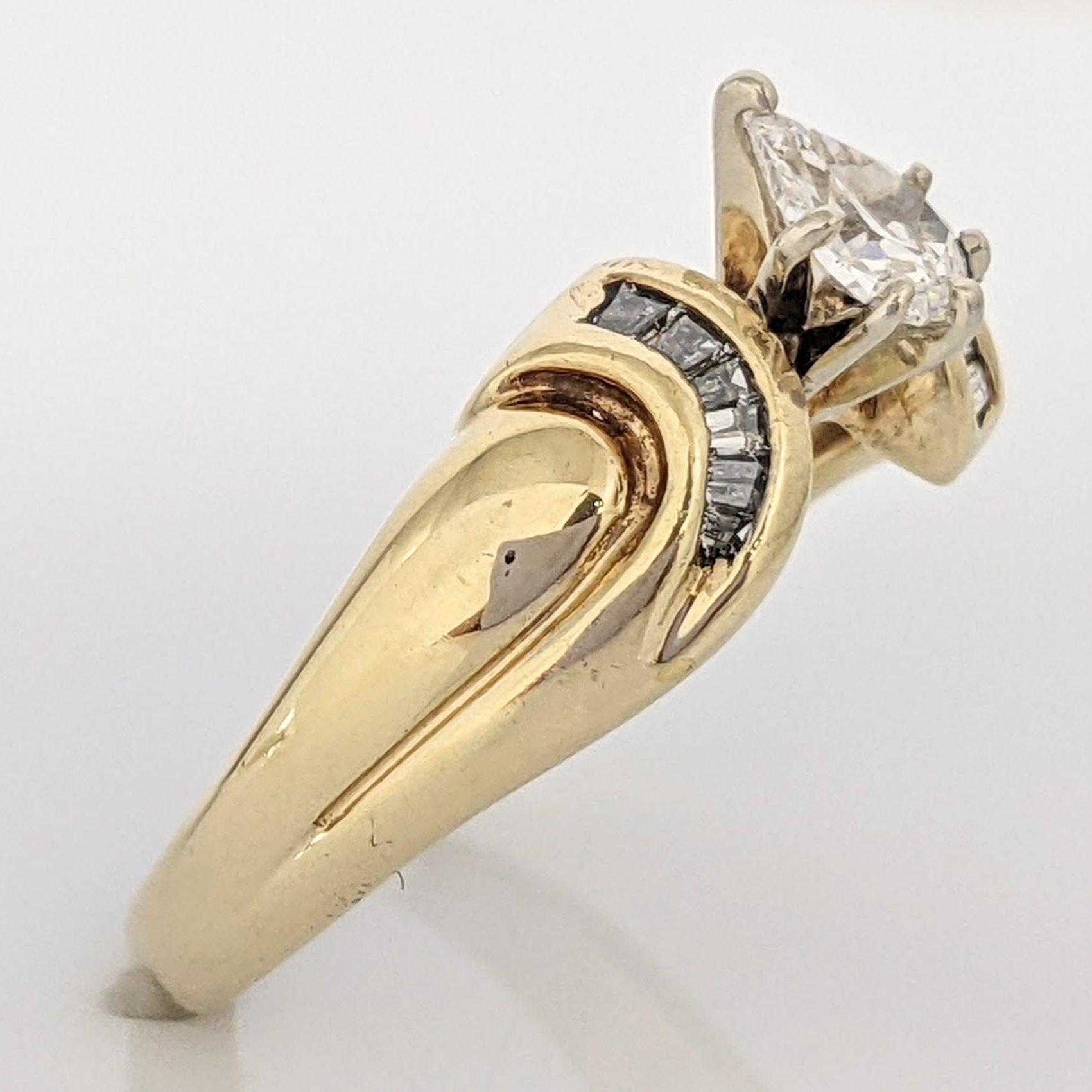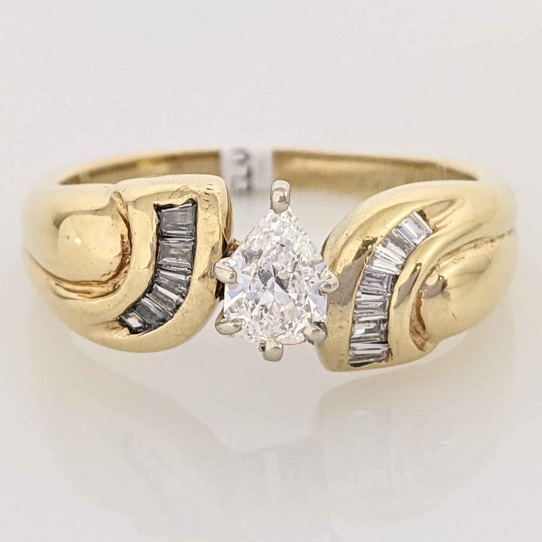 Accentuate your look with this stunning 14K estate ring. Featuring a modified pear diamond of .33 carats and 13 baguette diamonds, it has a total weight of 4.1 grams - perfect for adding a touch of luxury to any outfit.