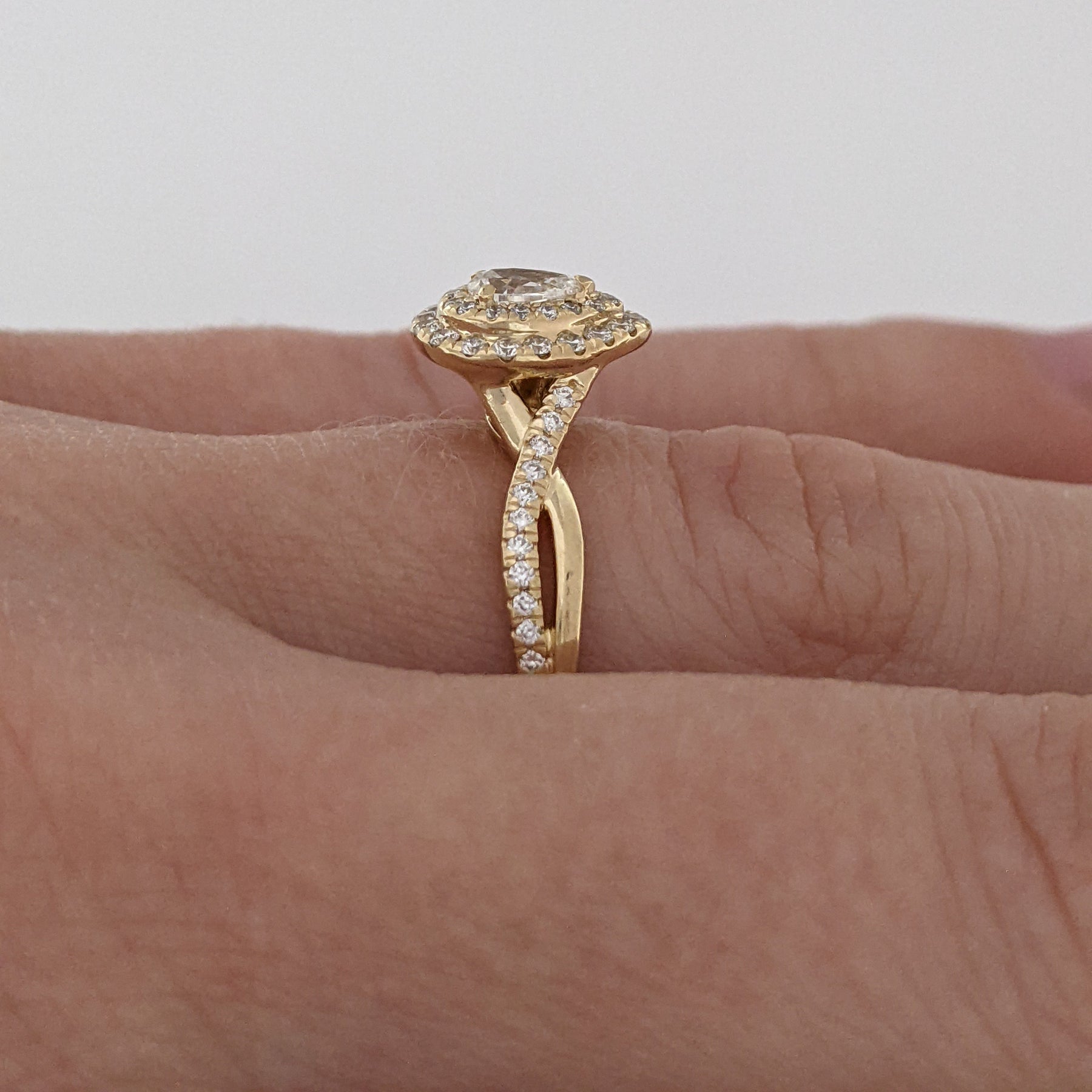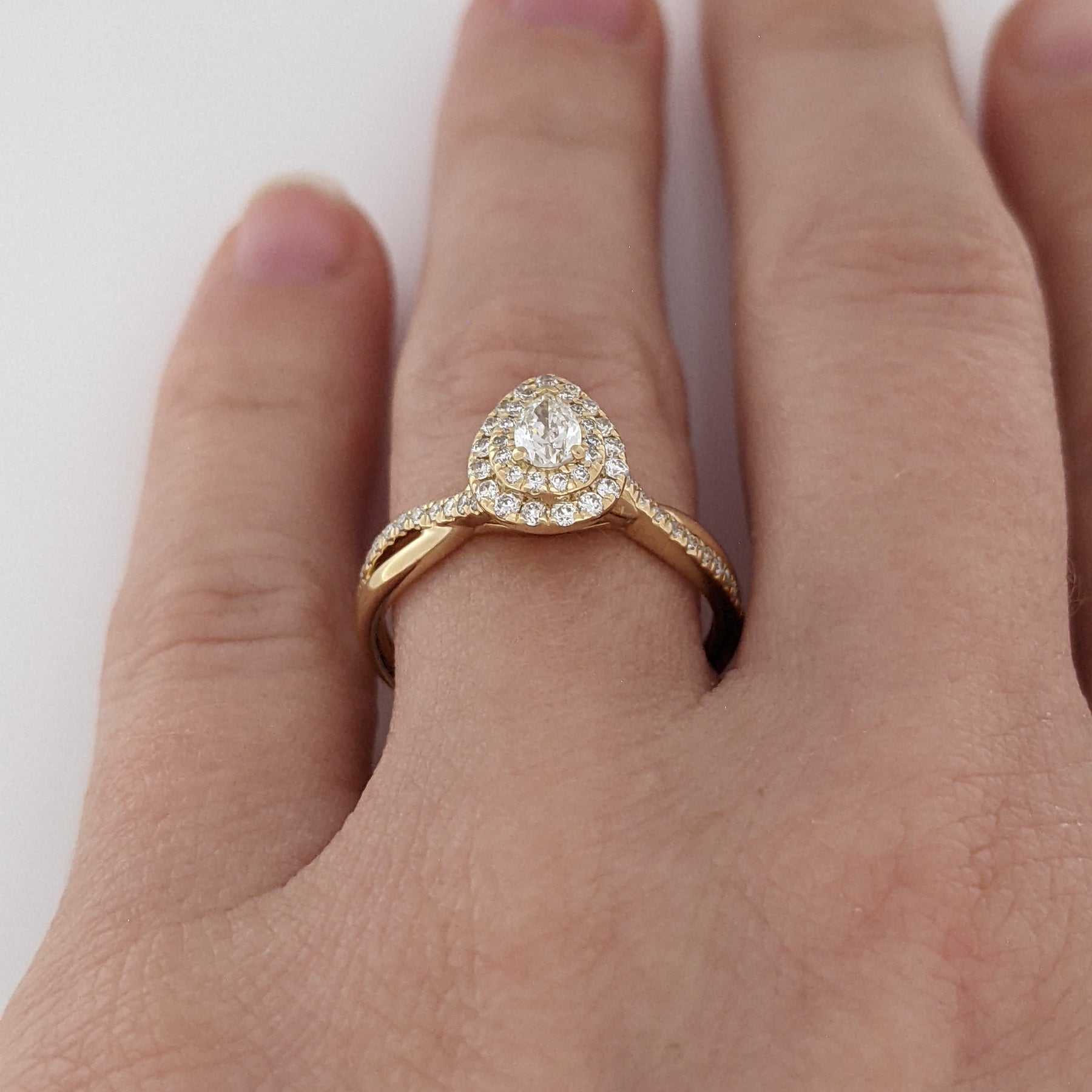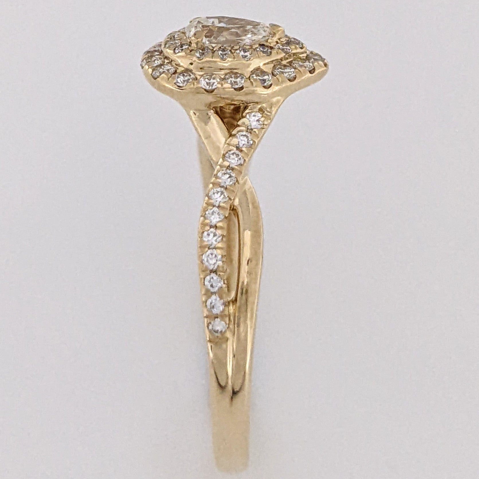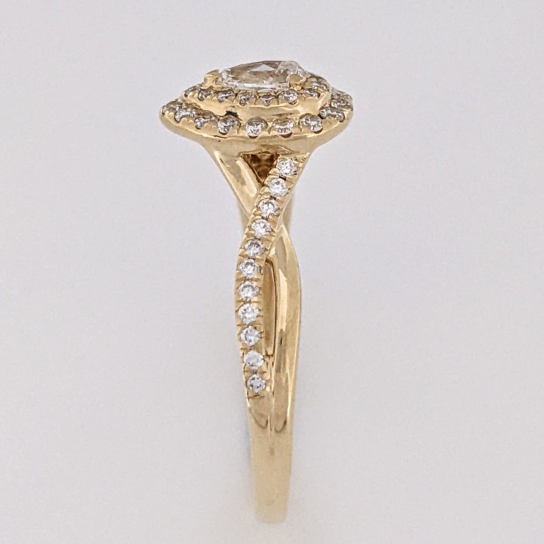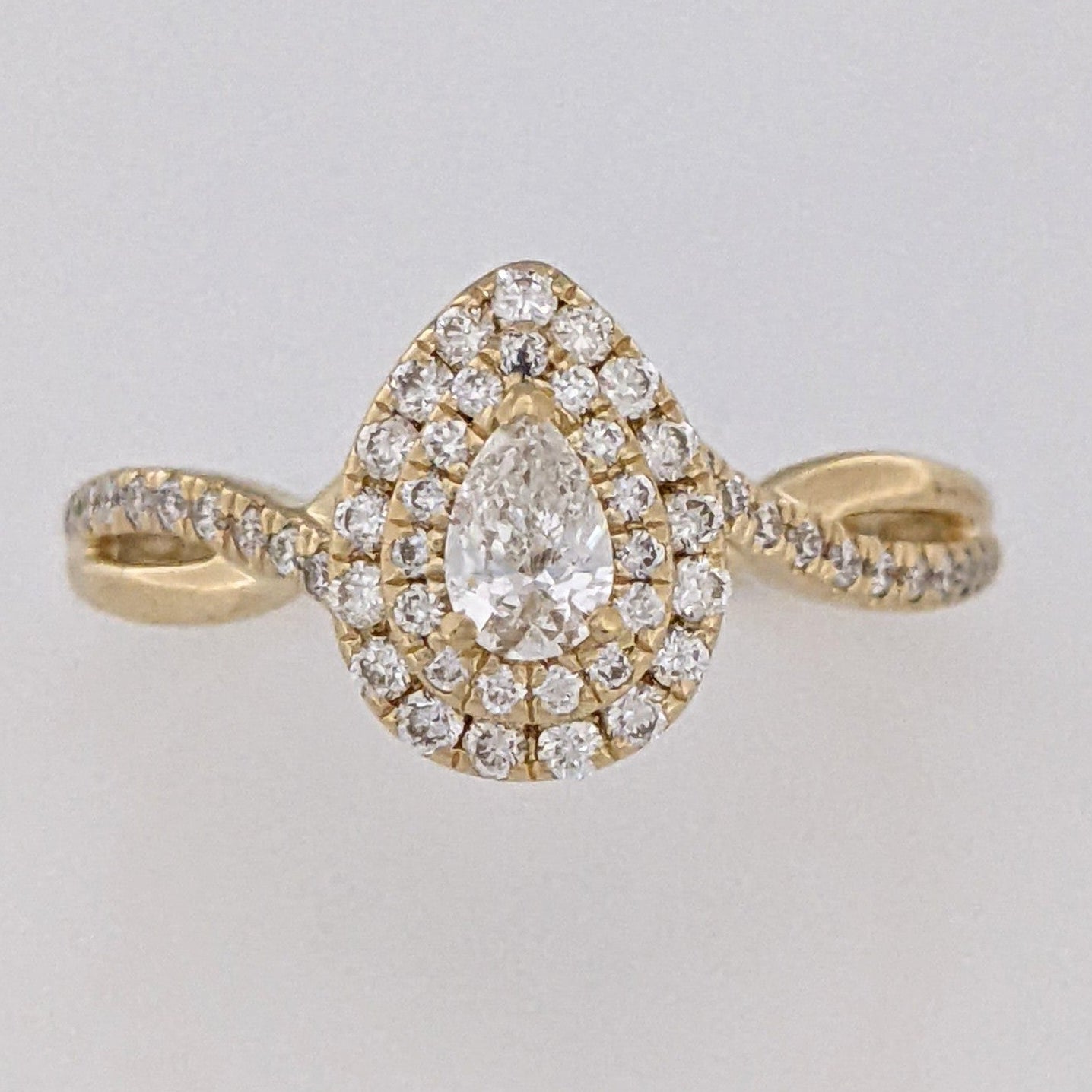14K .53 CARAT TOTAL WEIGHT SI1 J DIAMOND PEAR (1) ROUND (56) DOUBLE HALO ESTATE RING 2.8 GRAMS
