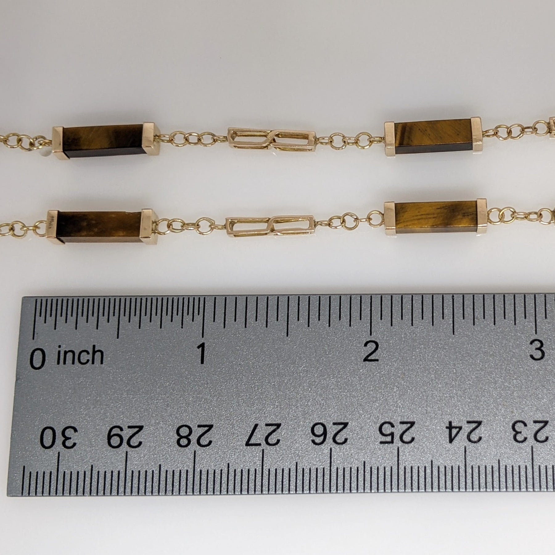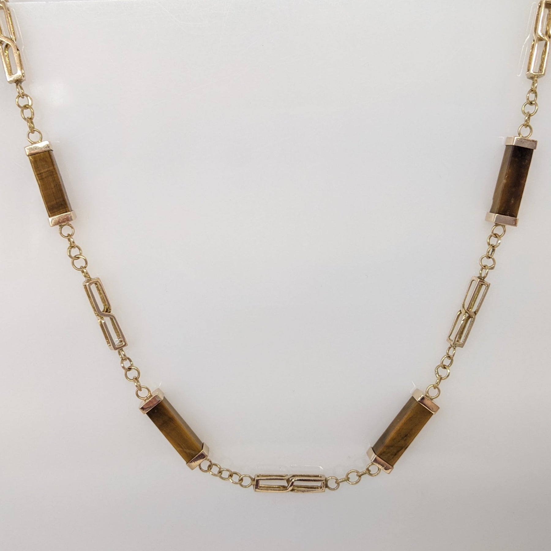 14K TIGER-EYE EMERALD CUT BAR (12) ESTATE NECKLACE 17.1 GRAMS