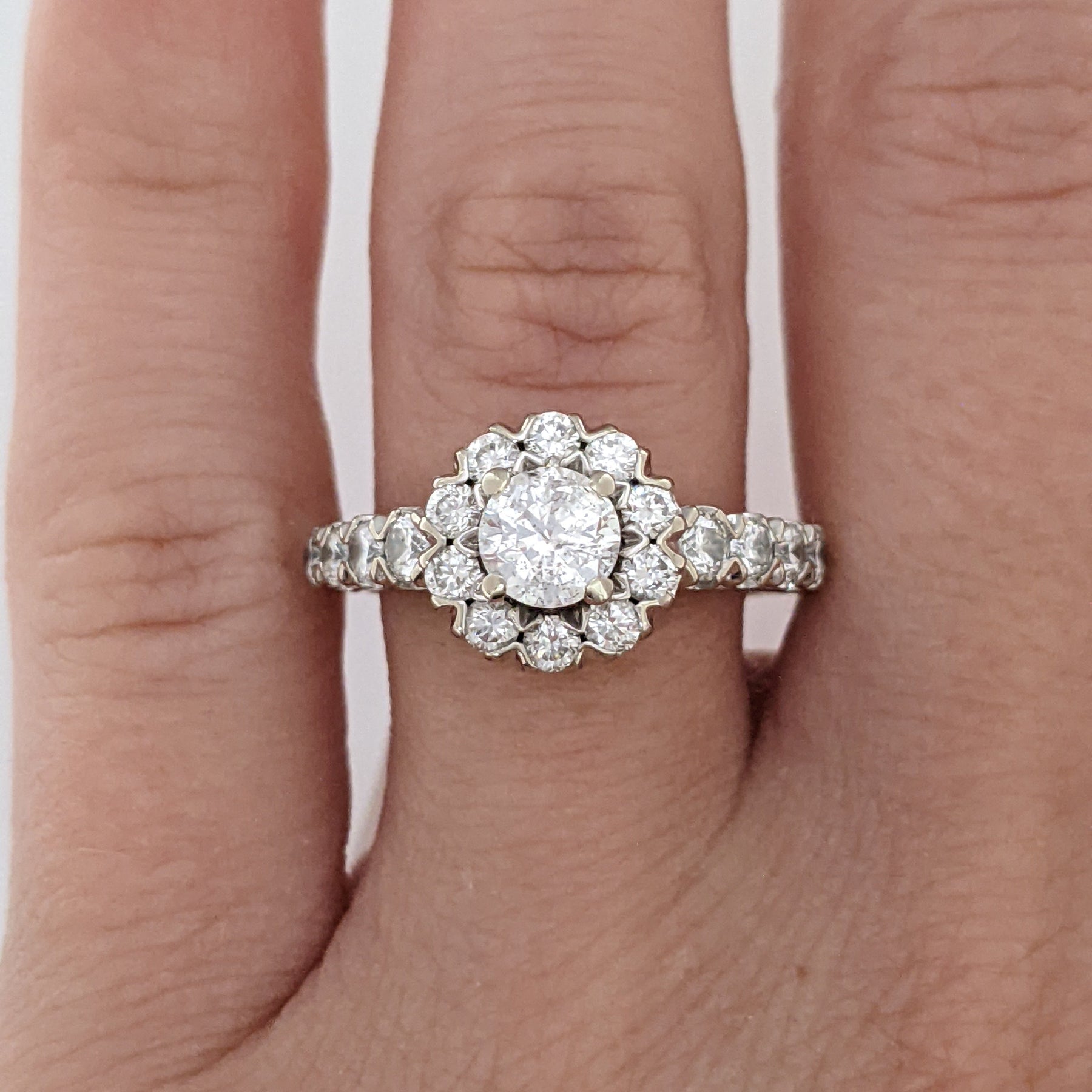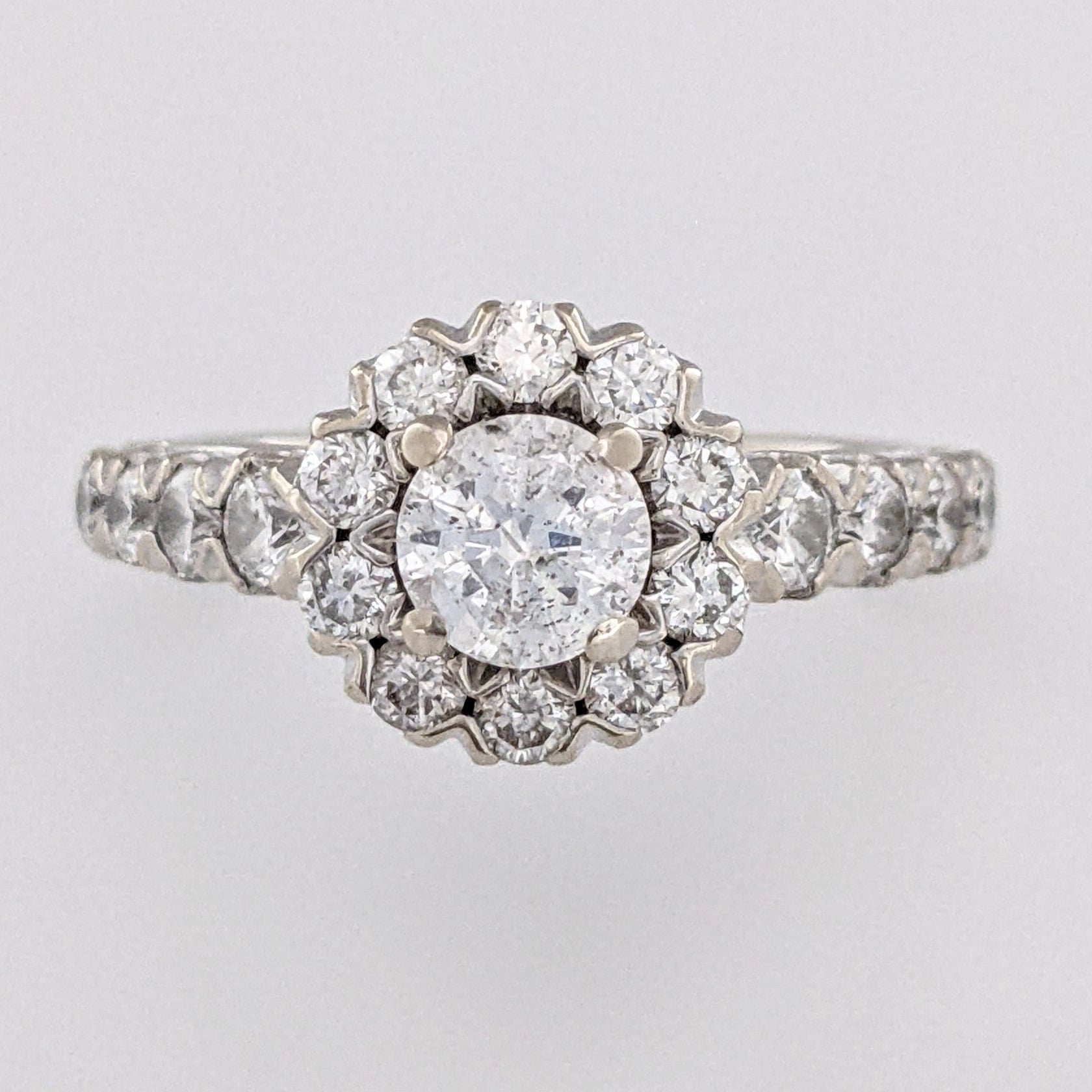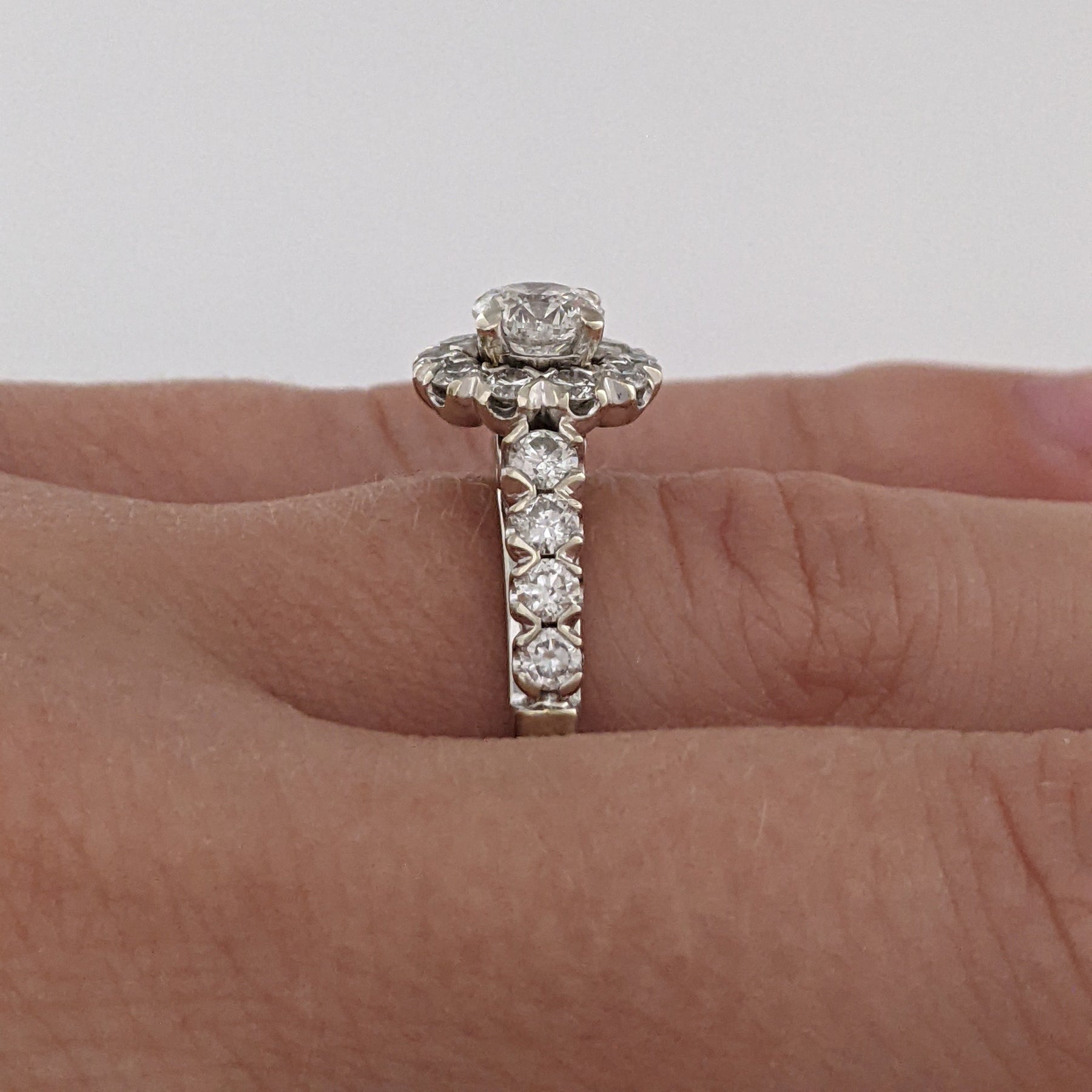 14K WHITE 1.46 CARAT TOTAL WEIGHT SI2-I2 H DIAMOND ROUND (19) FLORAL ESTATE RING 4.9 GRAMS