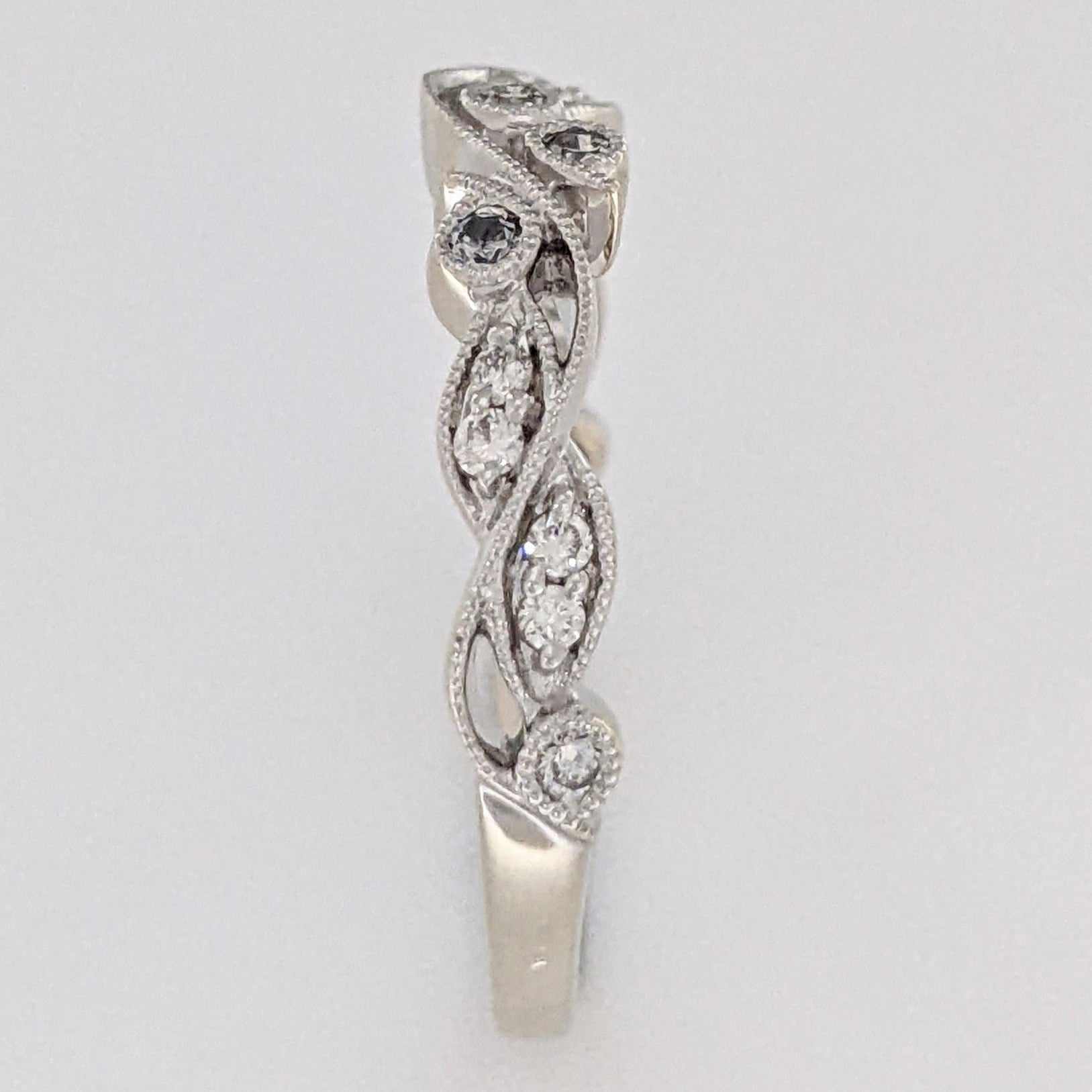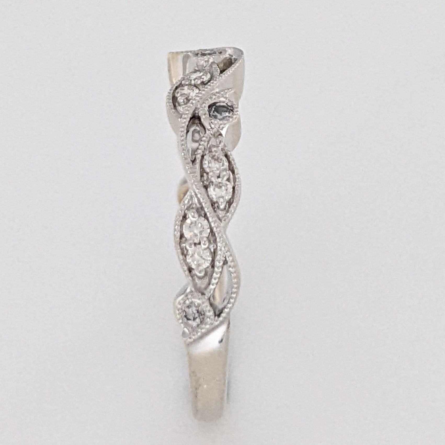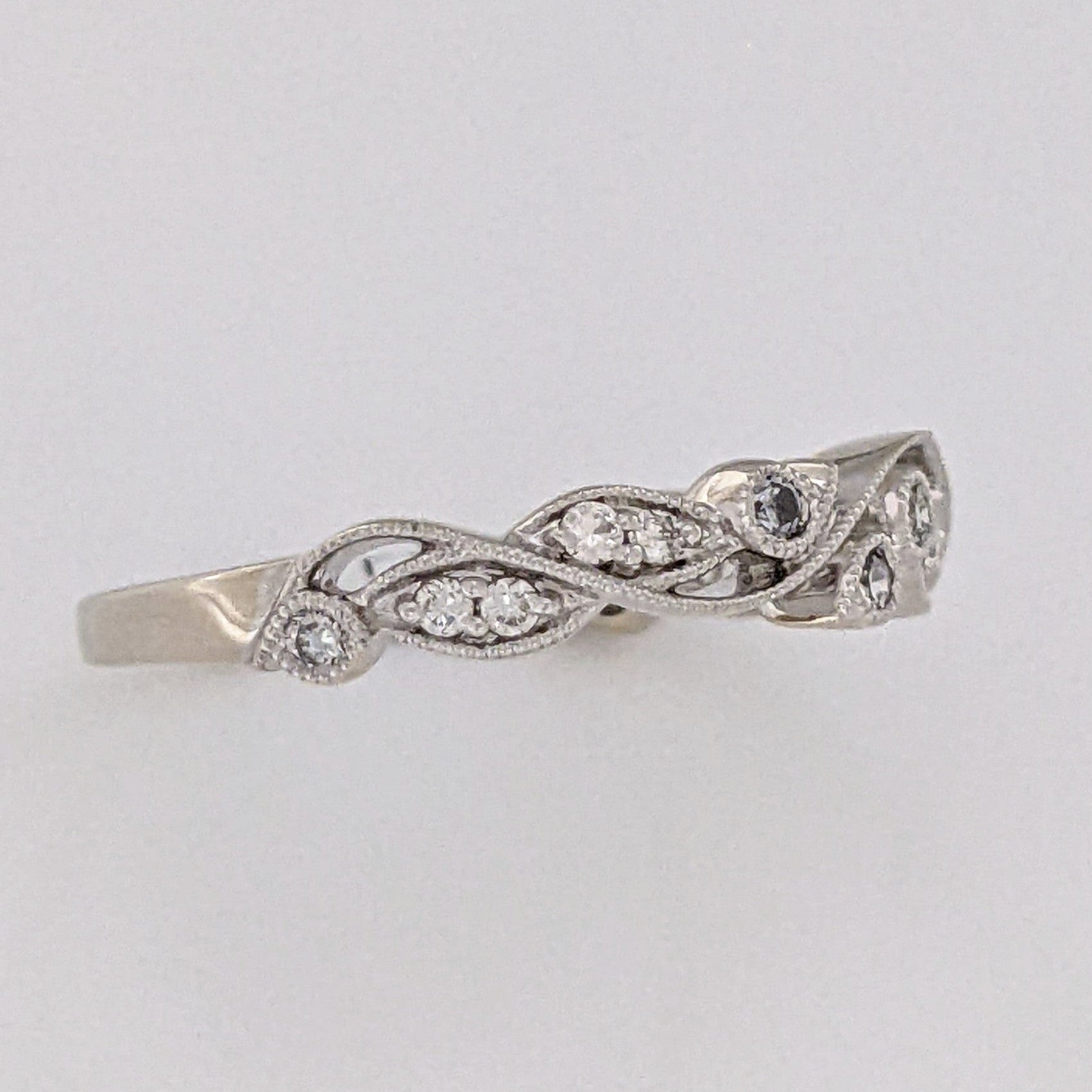 14K WHITE .16 CARAT TOTAL WEIGHT SI1 J DIAMOND ROUND (16) FANCY ESTATE BAND 2.5 GRAMS