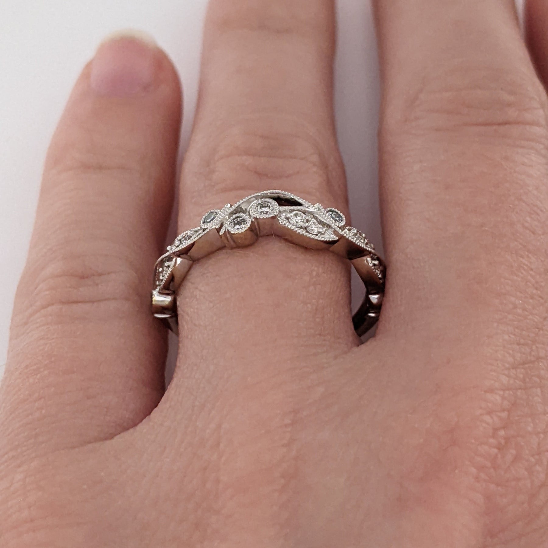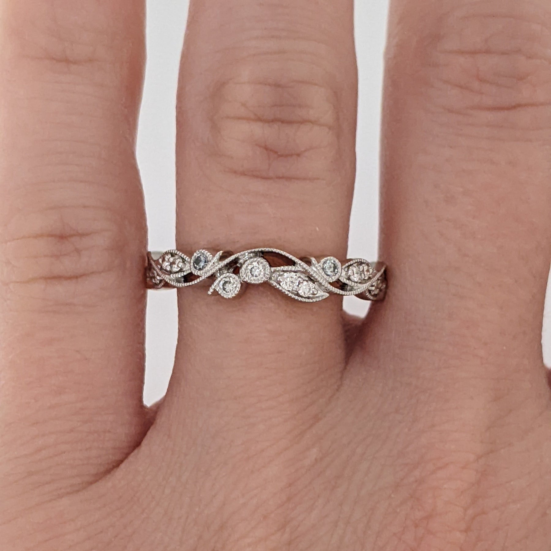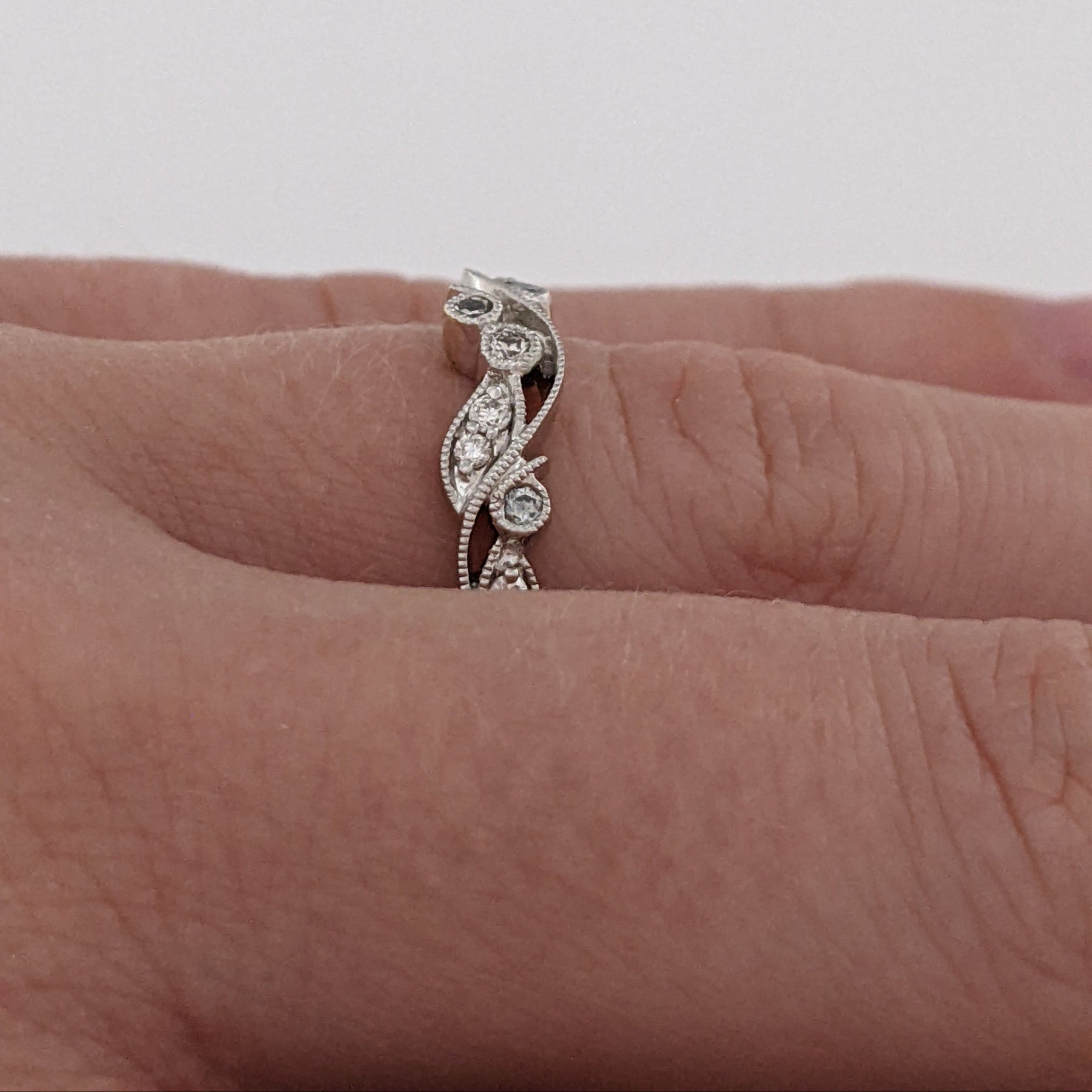 14K WHITE .16 CARAT TOTAL WEIGHT SI1 J DIAMOND ROUND (16) FANCY ESTATE BAND 2.5 GRAMS
