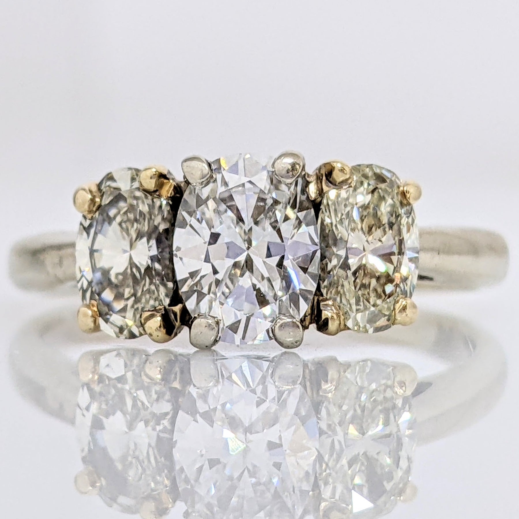14K WHITE 1.67 CARAT TOTAL WEIGHT VS-SI2 G-P DIAMOND OVAL (3) ESTATE TRINITY RING 3.3 GRAMS