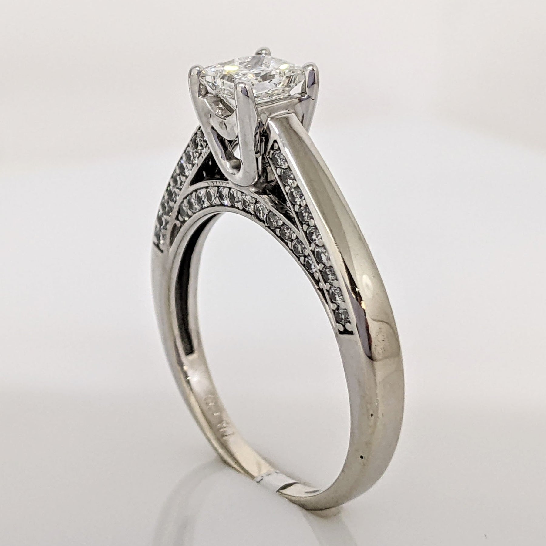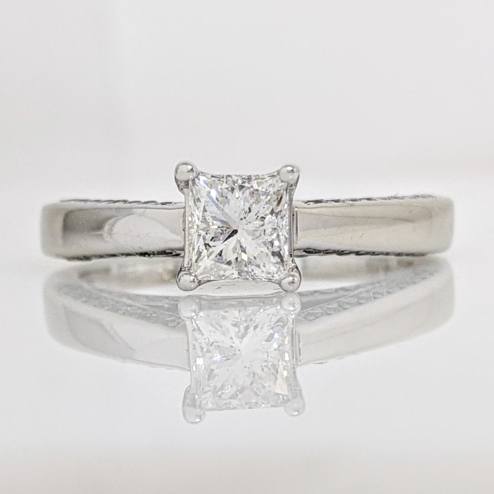 14K WHITE 1.13 CARAT TOTAL WEIGHT I1 G DIAMOND PRINCESS CUT WITH (48) ROUND MELEE ESTATE RING 4.7 GRAMS