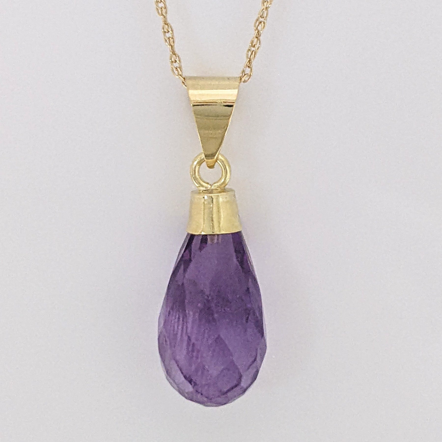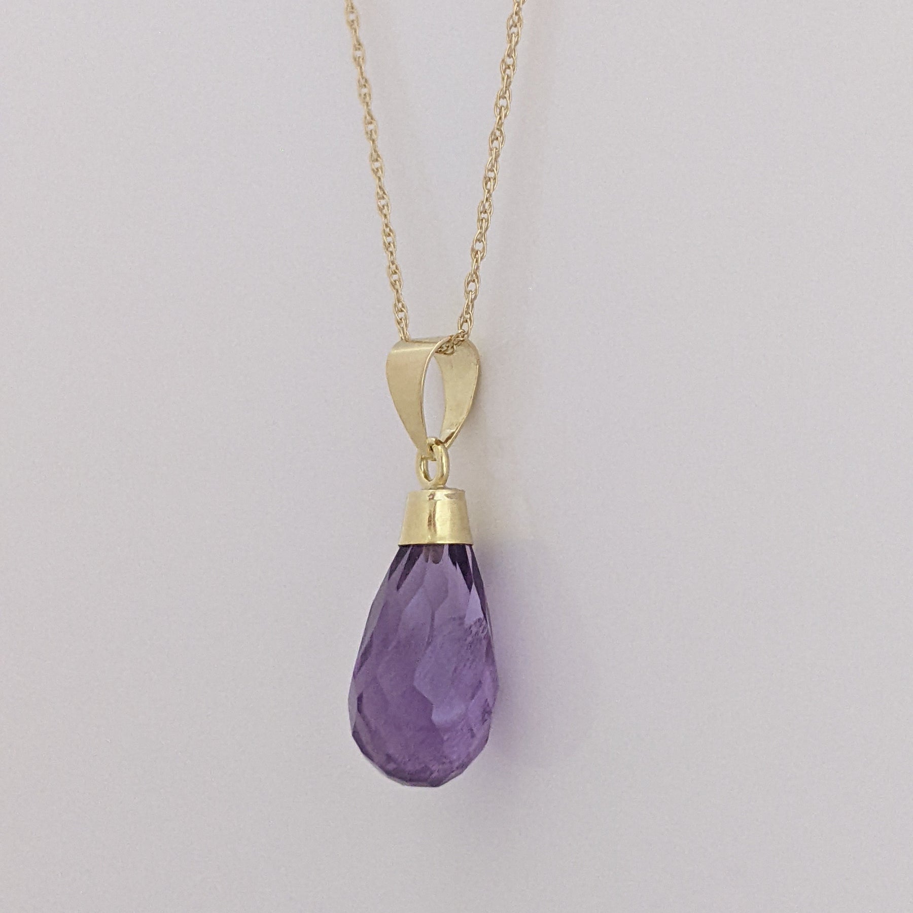 18K AMETHYST BRIOLETTE ESTATE PENDANT & 14K CHAIN 1.9 GRAMS