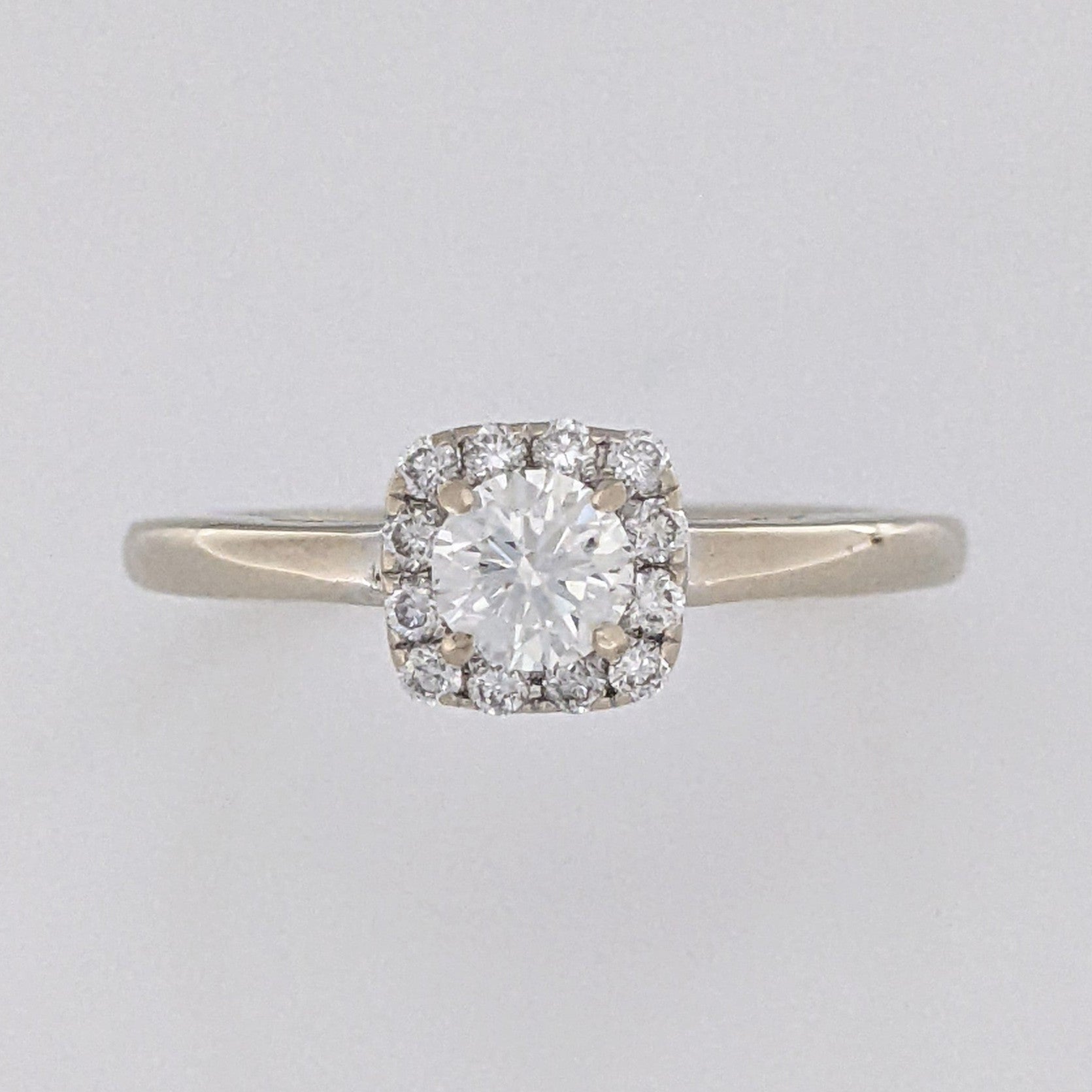 18K WHITE .50 CARAT TOTAL WEIGHT SI1 H DIAMOND ROUND (13) ESTATE HALO RING 3.0 GRAMS