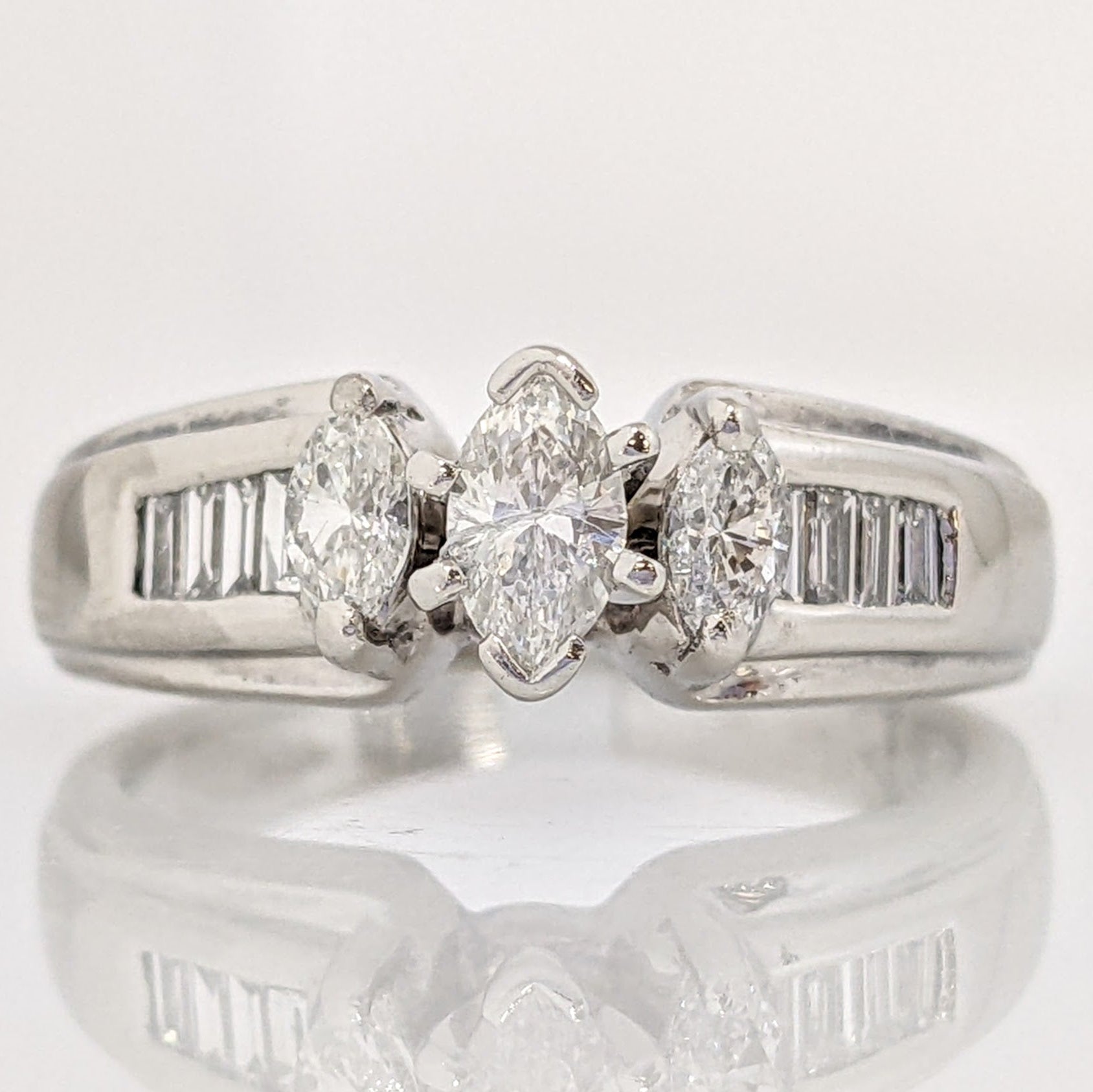 PLATINUM .62 CARAT TOTAL WEIGHT SI2 F DIAMOND MARQUISE (3) WITH BAGUETTE (8) ESTATE RING 6.1 GRAMS