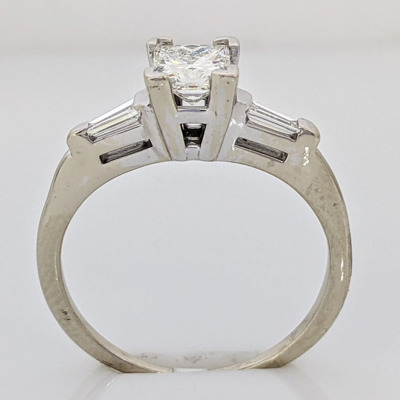 14K WHITE .53 CARAT TOTAL VS1 I DIAMOND PRINCESS CUT WITH (2) BAGUETTE TAPERED ESTATE RING