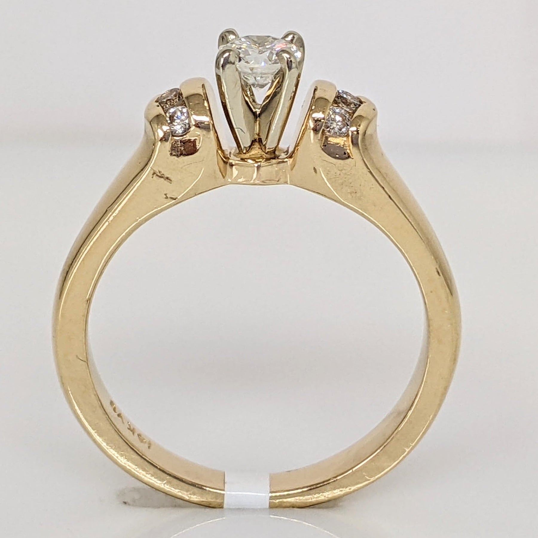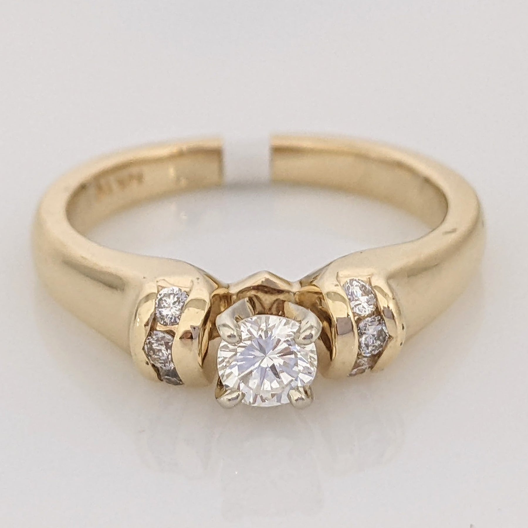 This classic estate ring features high quality craftsmanship and seven sparkling diamonds, with a total carat weight of .42 and a G color rating. Expertly crafted in 14K gold, this ring weighs 4.7 grams for a sturdy, lasting design. Enjoy the timeless beauty of diamonds for years to come.