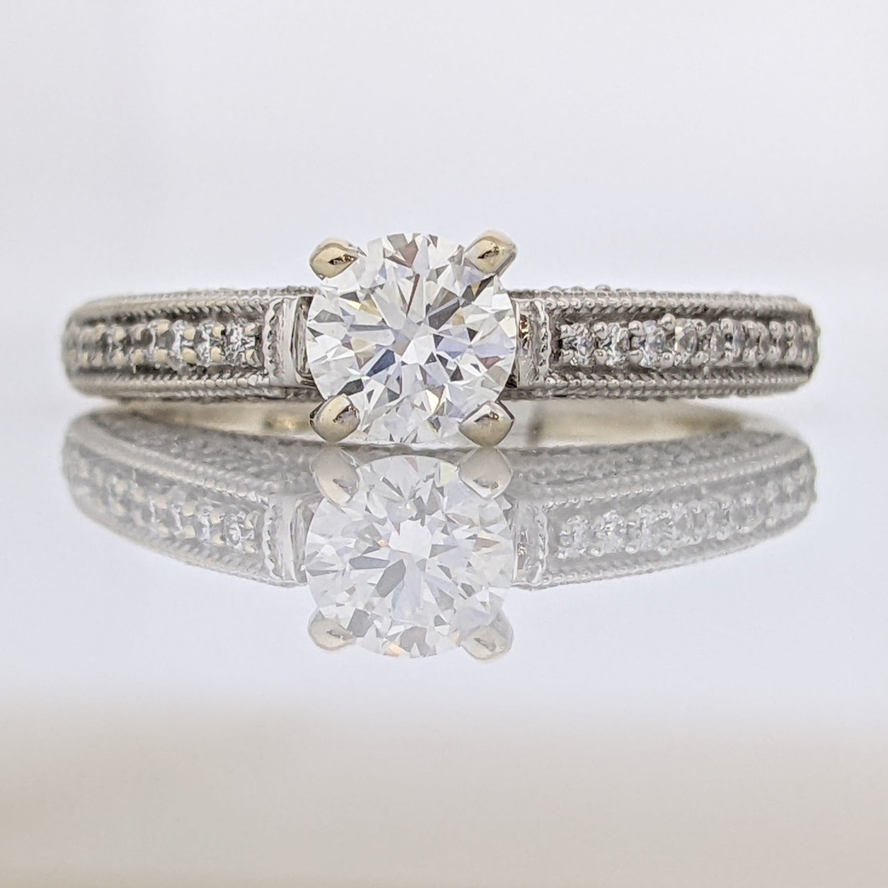 14K WHITE 1.01 CARAT TOTAL WEIGHT VS1 H DIAMOND ROUND (91) ESTATE RING 5.0 GRAMS