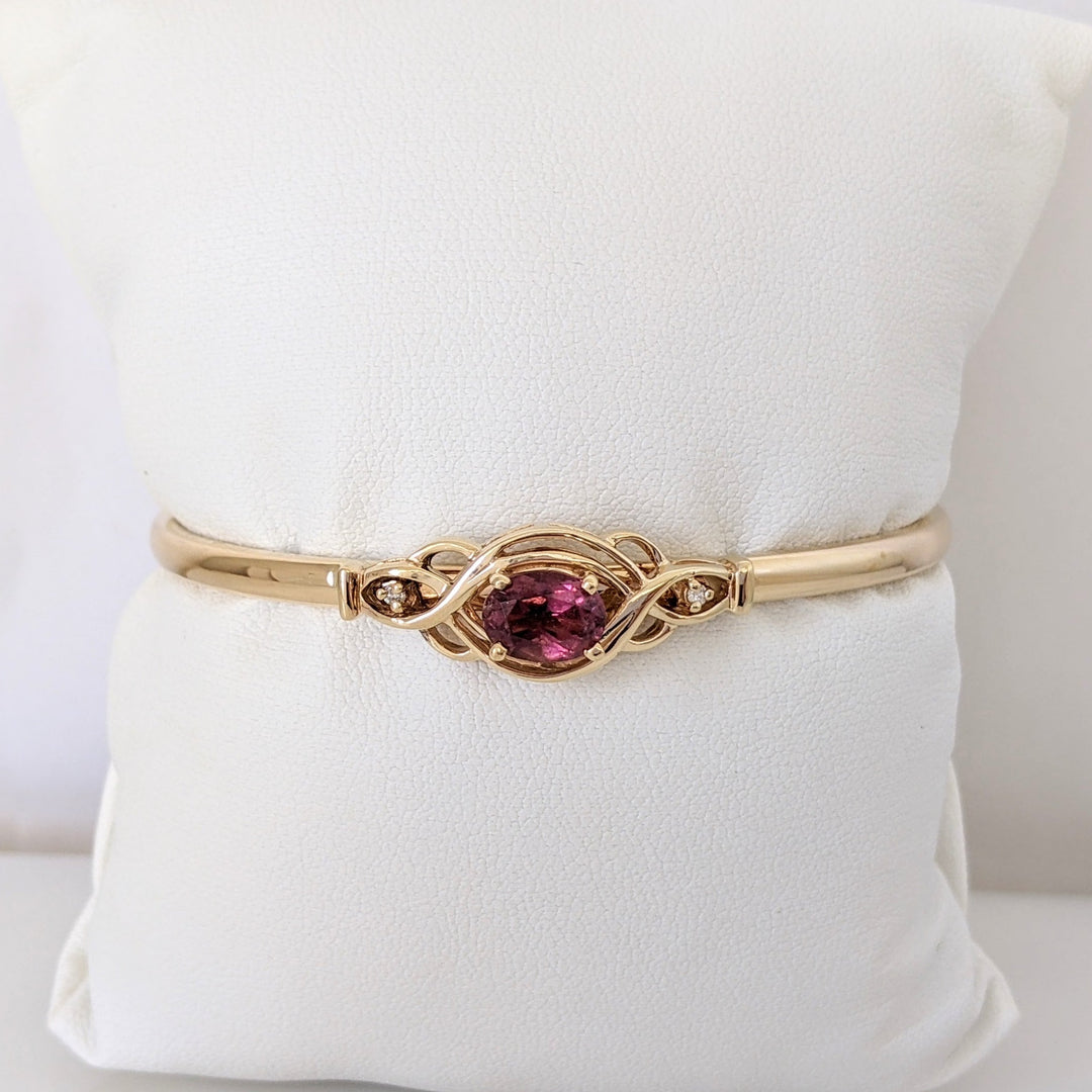 14K PINK TOURMALINE OVAL 6X8 WTH (2) MELEE ESTATE CUFF BRACELET 19.2 GRAMS