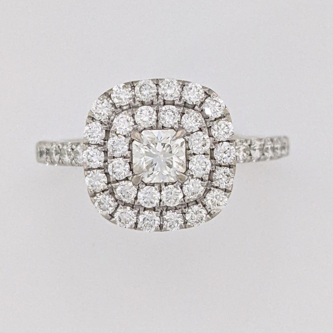 14K WHITE 1.07 CARAT TOTAL WEIGHT SI2-I1 I DIAMOND ROUND (45) DOUBLE HALO ESTATE RING 3.0 GRAMS