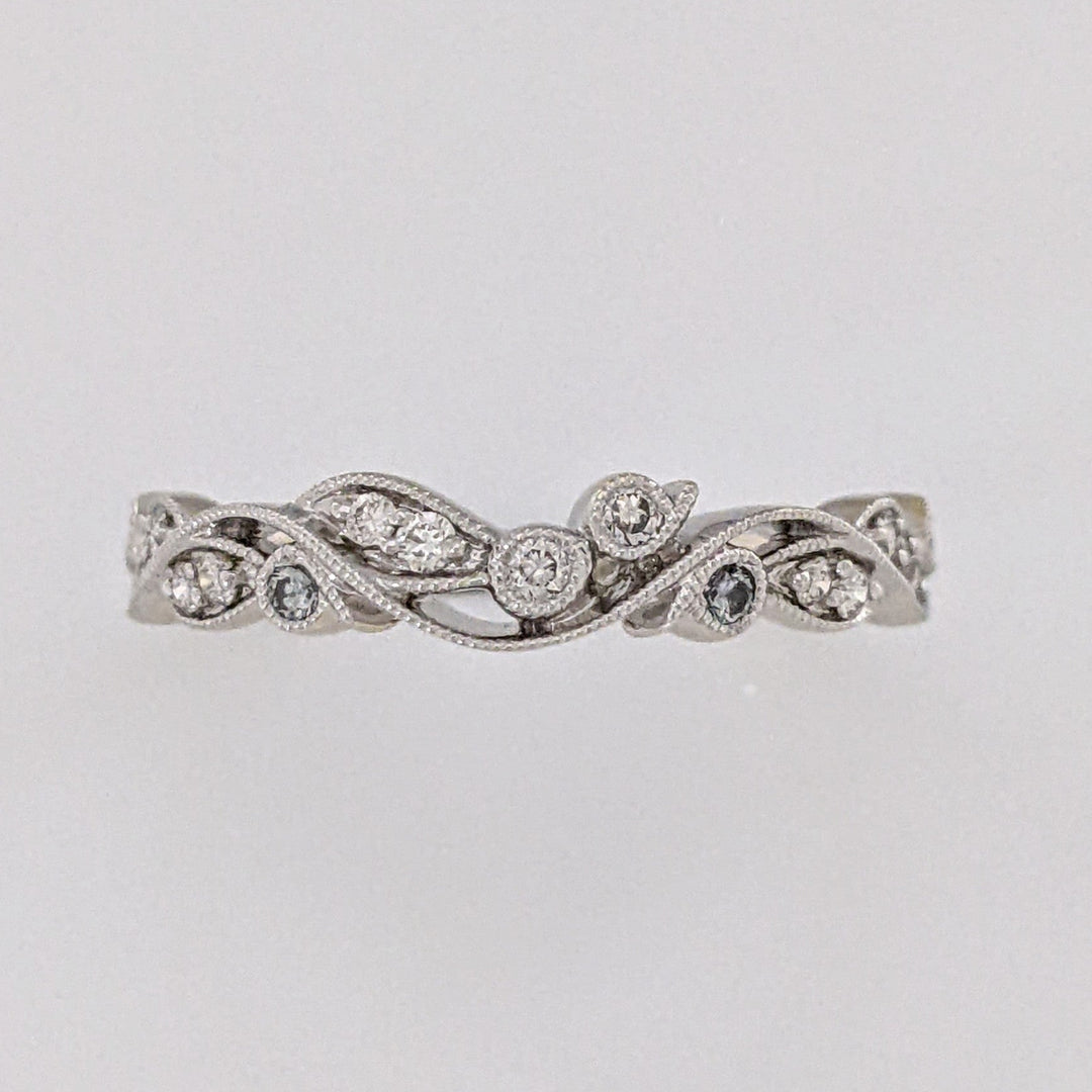 14K WHITE .40 CARAT TOTAL WEIGHT SI1 H DIAMOND ROUND (11) ESTATE CURVED BAND 1.9 GRAMS