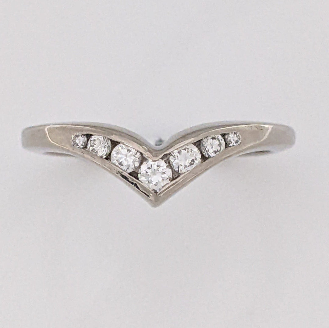 18K WHITE .21 CARAT TOTAL WEIGHT SI1 I DIAMOND ROUND (7) V-SHAPED ESTATE BAND 3.2 GRAMS