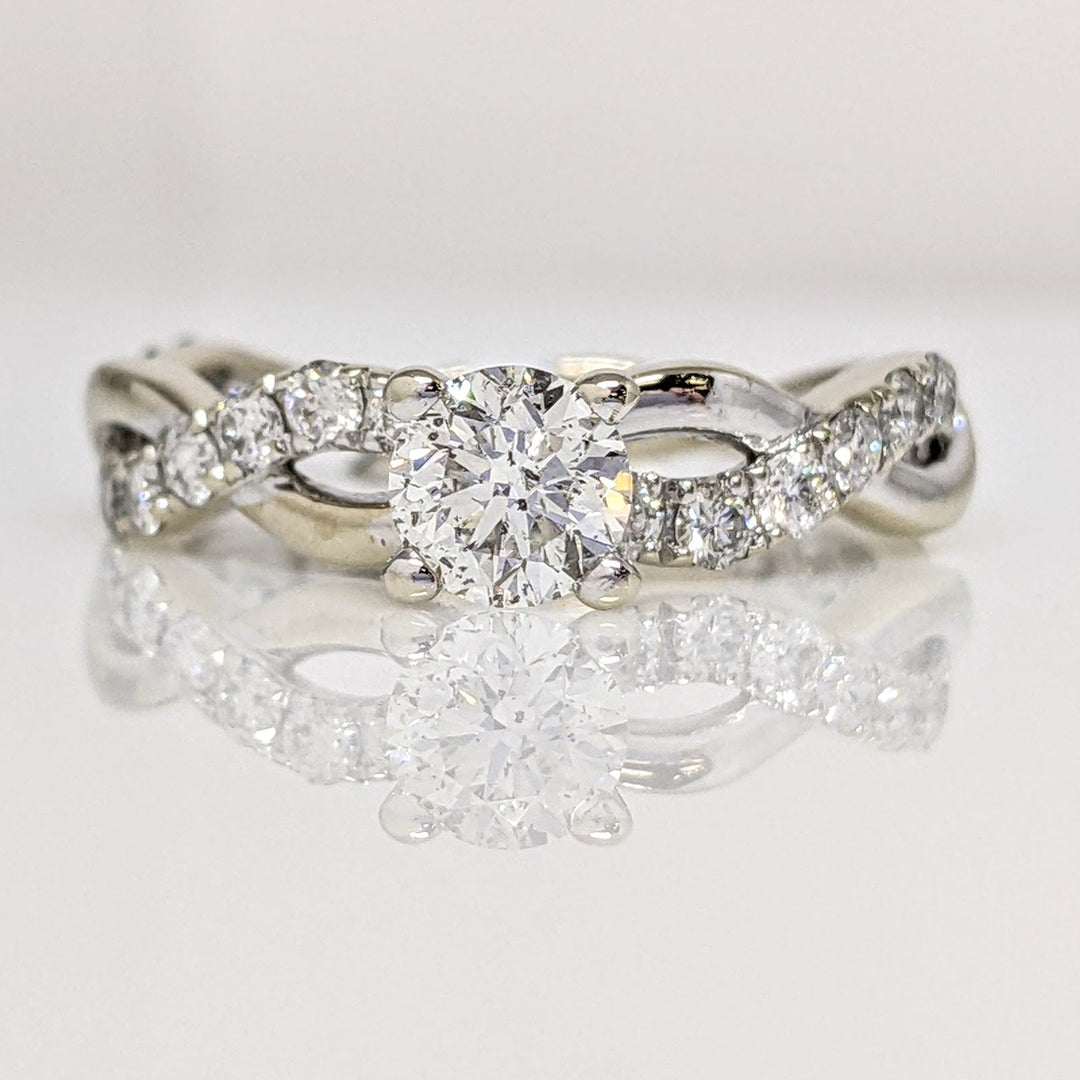 14K WHITE 1.17 CARAT TOTAL WEIGHT I1 J DIAMOND ROUND (23) TWIST SHANK ESTATE RING 2.3 GRAMS