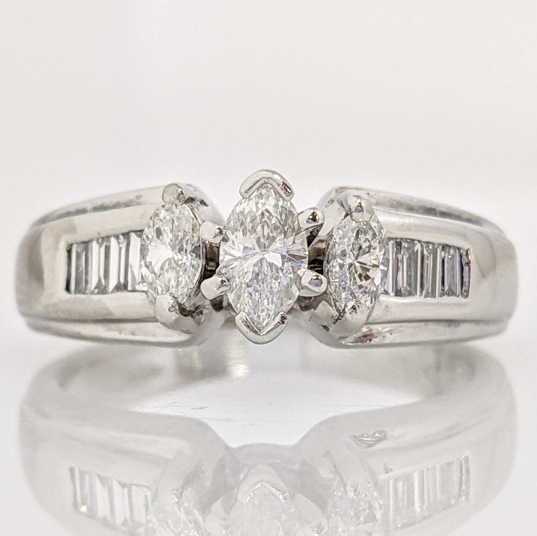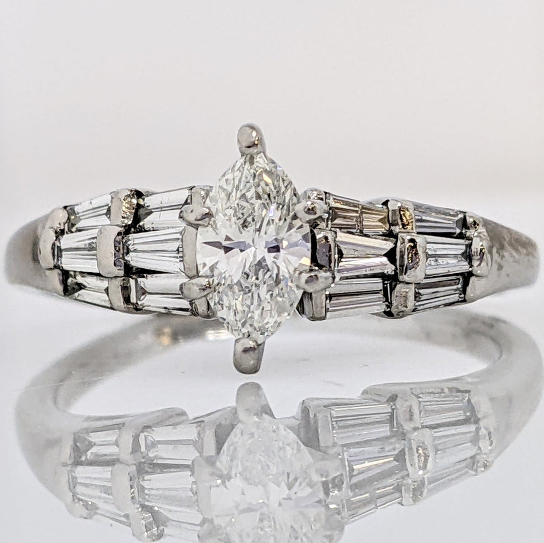 PLATINUM 1.06 CARAT TOTAL WEIGHT SI2 G-H MARQUISE DIAMOND WITH (12) BAGUETTE ESTATE RING 6.4 GRAMS