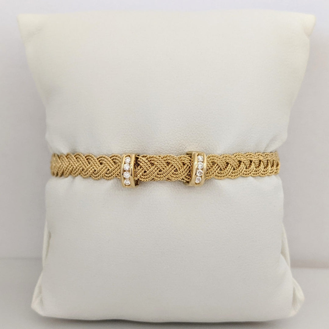 14K DIAMOND ROUND (8) END TABS WOVEN FLEXIBLE ESTATE BRACELET 11.8 GRAMS