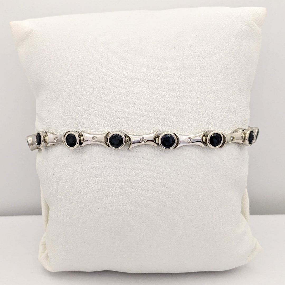 14K WHITE SAPPHIRE ROUND (14) 4MM BEZEL WITH .13 DIAMOND TOTAL WEIGHT ESTATE BRACELET 12.7 GRAMS