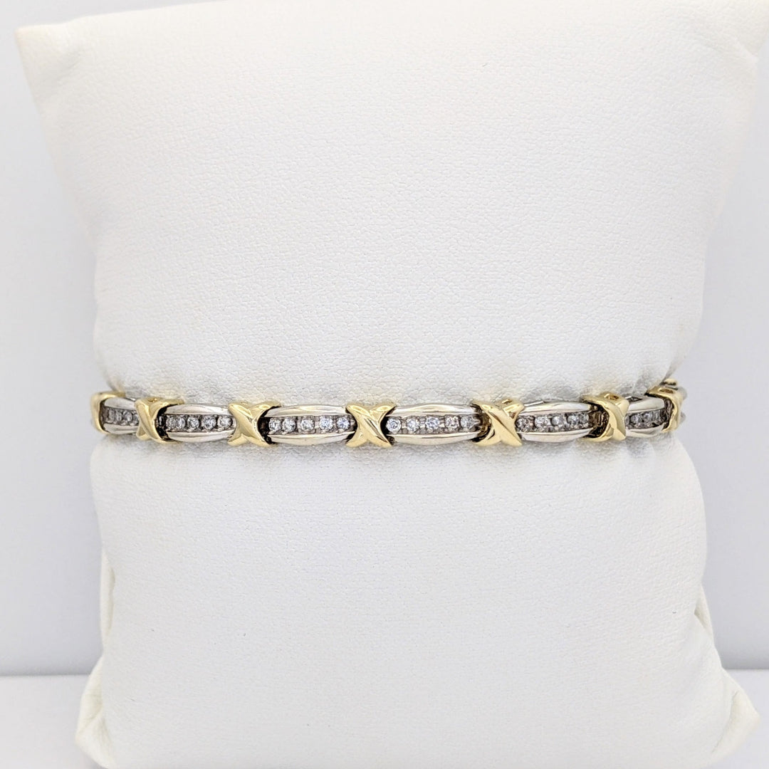 10K TWO-TONE .88 CARAT TOTAL WEIGHT I1 I DIAMOND ROUND (70) ESTATE LINK BRACELET 12.1 GRAMS