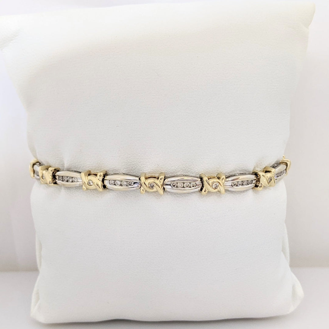 14K TWO-TONE .98 CARAT TOTAL WEIGHT I1 J-K DIAMOND ROUND (60) CHANNEL SET LINK ESTATE BRACELET 12.7 GRAMS