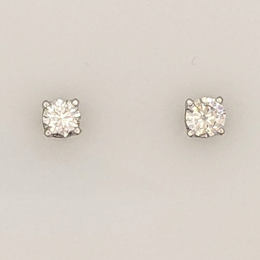 14K WHITE .46 CARAT TOTAL WEIGHT I1 H DIAMOND ROUND (2) ESTATE STUD EARRINGS 1.2 GRAMS