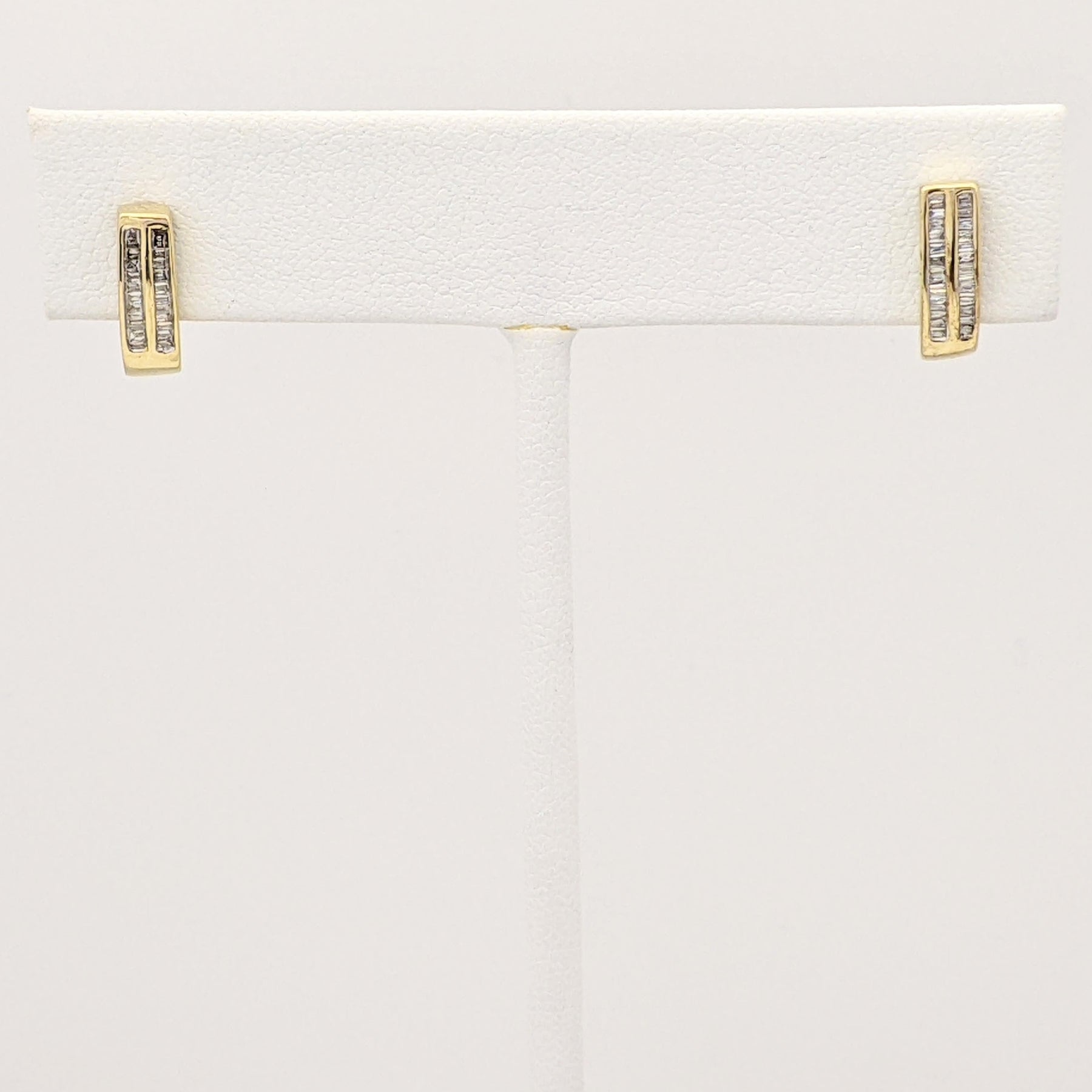 10K .24 CARAT TOTAL WEIGHT I1 I DIAMOND BAGUETTE (48) CHANNEL SET ESTATE J-HOOP EARRINGS 1.5 GRAMS