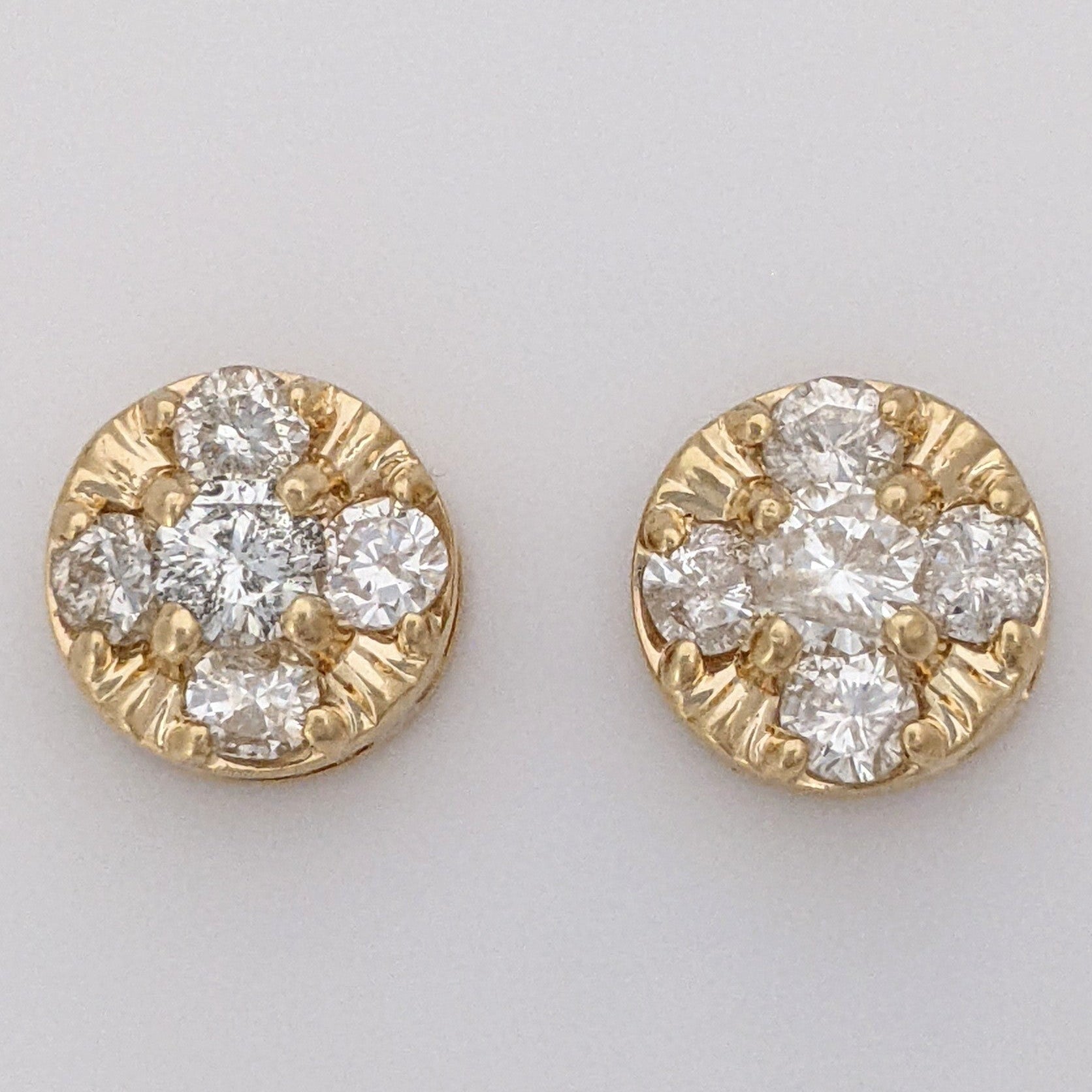 14K .78 CARAT TOTAL WEIGHT I2 J DIAMOND ROUND (10) CLUSTER STUD ESTATE EARRINGS 3.1 GRAMS