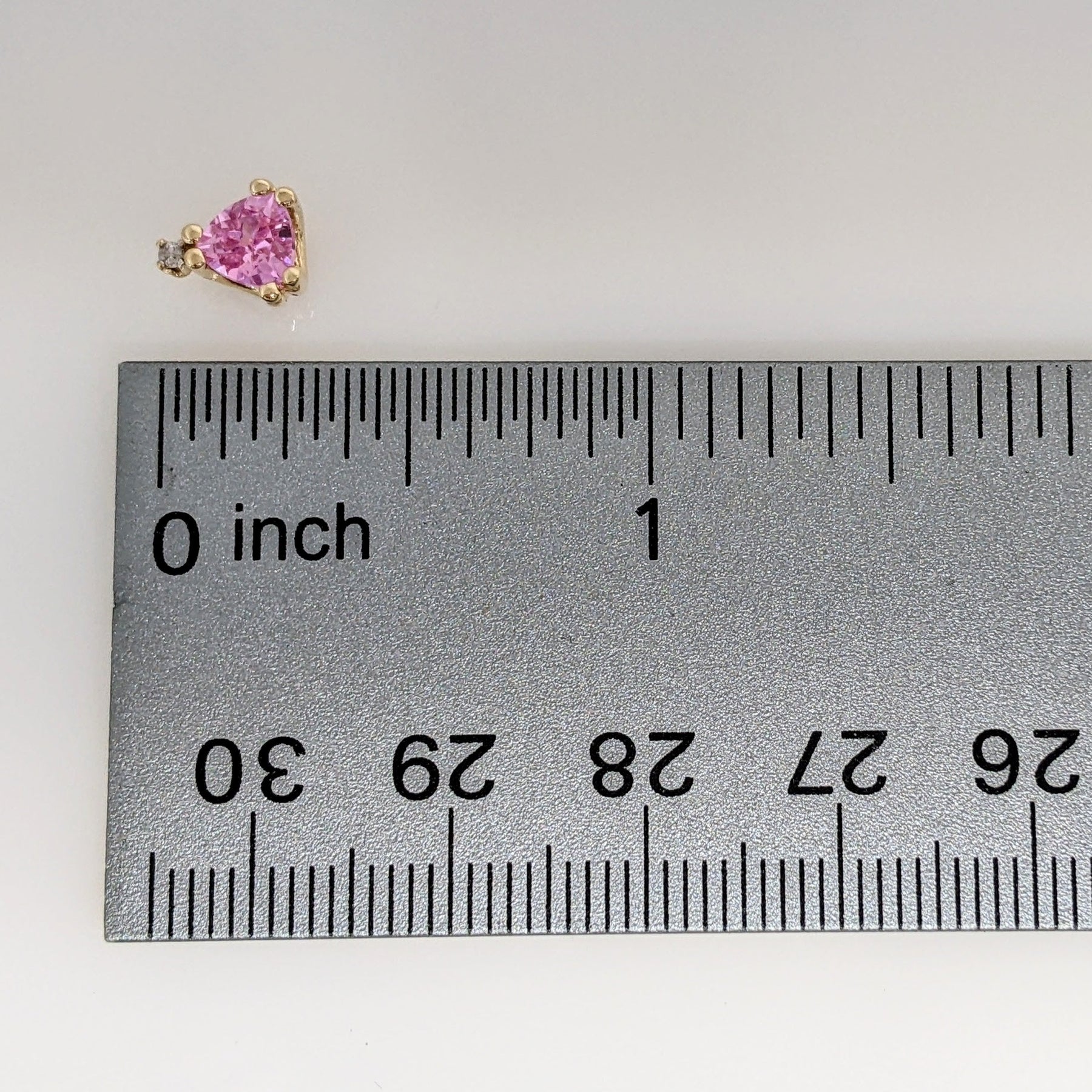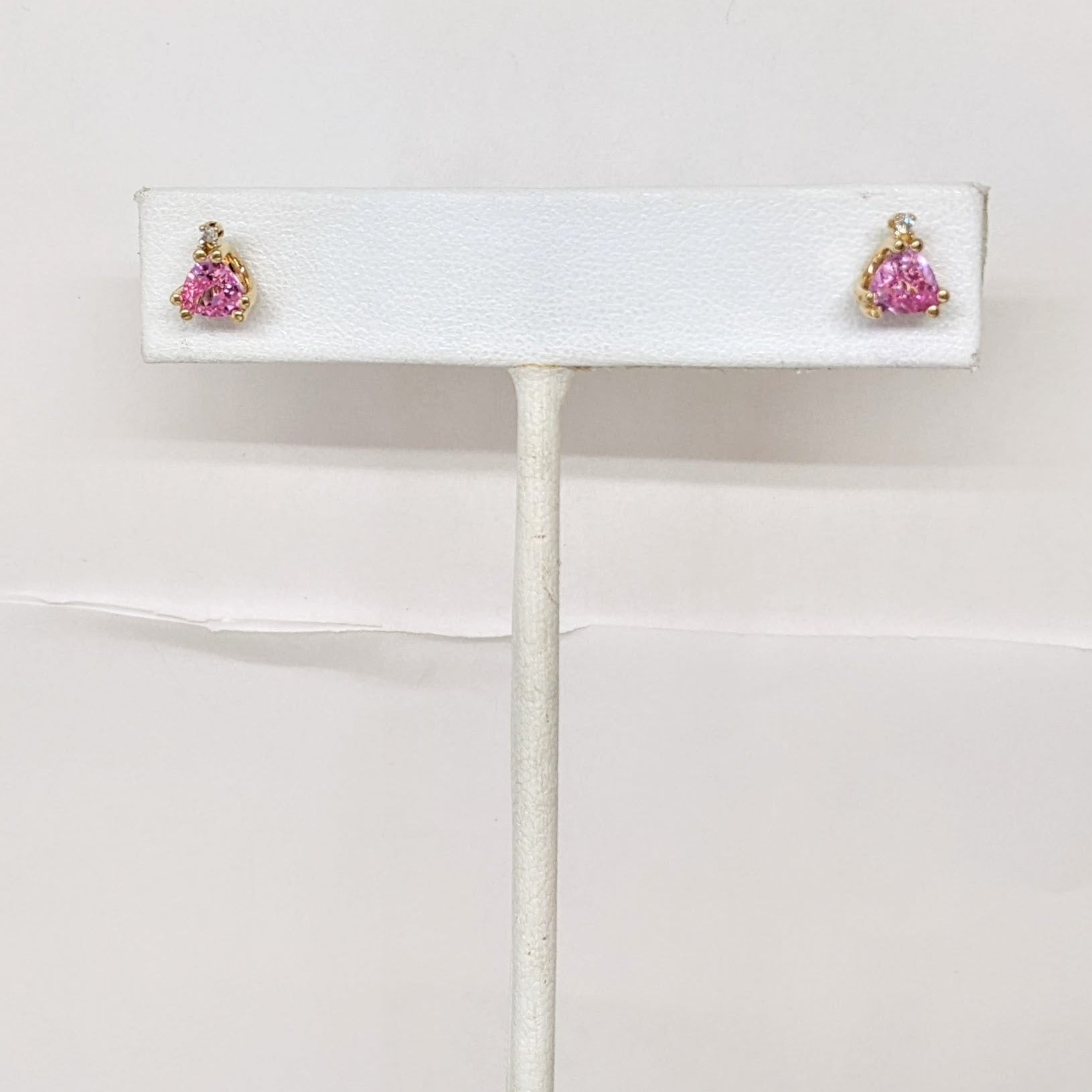 14K PINK SAPPHIRE TRILLION CUT 5X5 WITH (2) MELEE ESTATE STUD EARRINGS 1.2 GRAMS