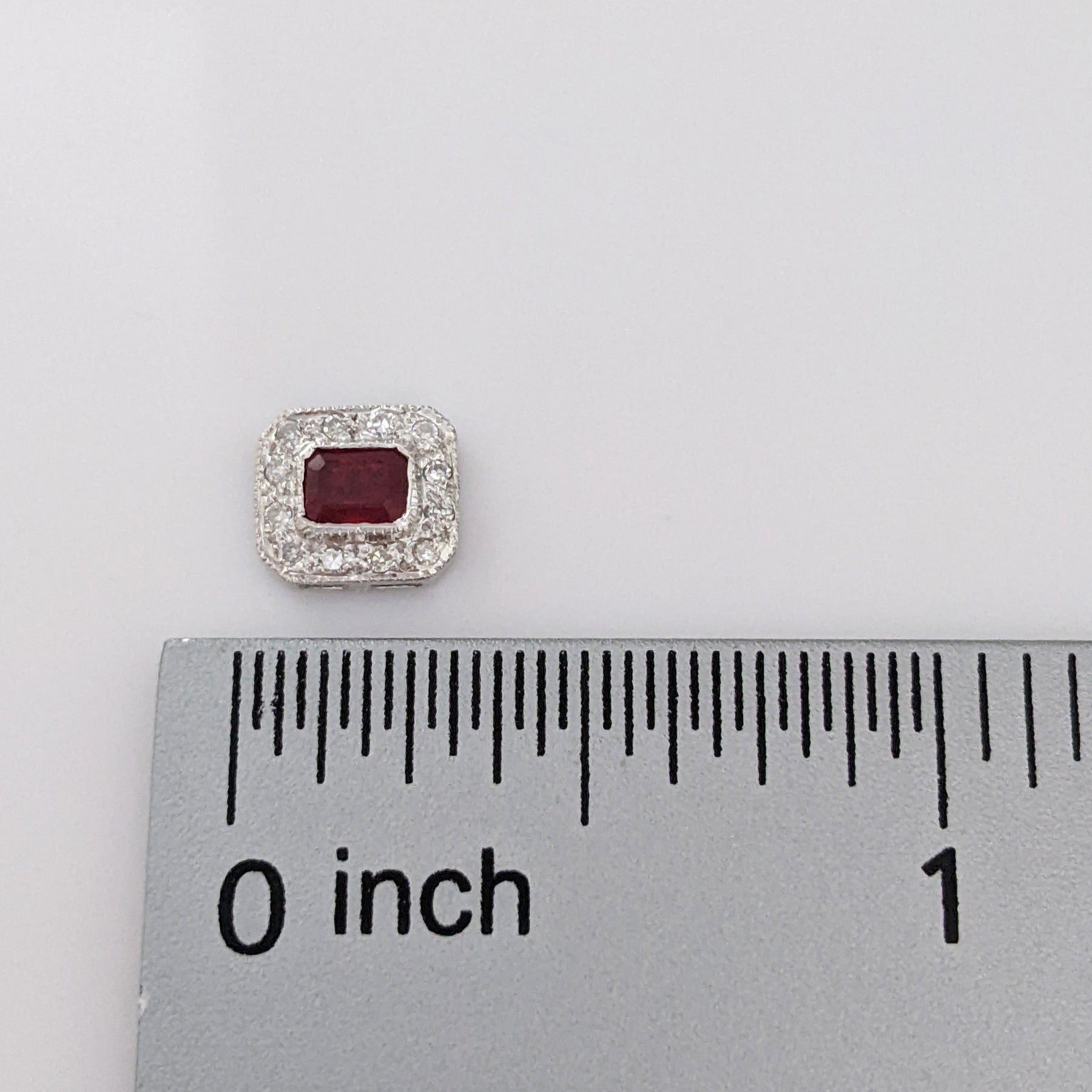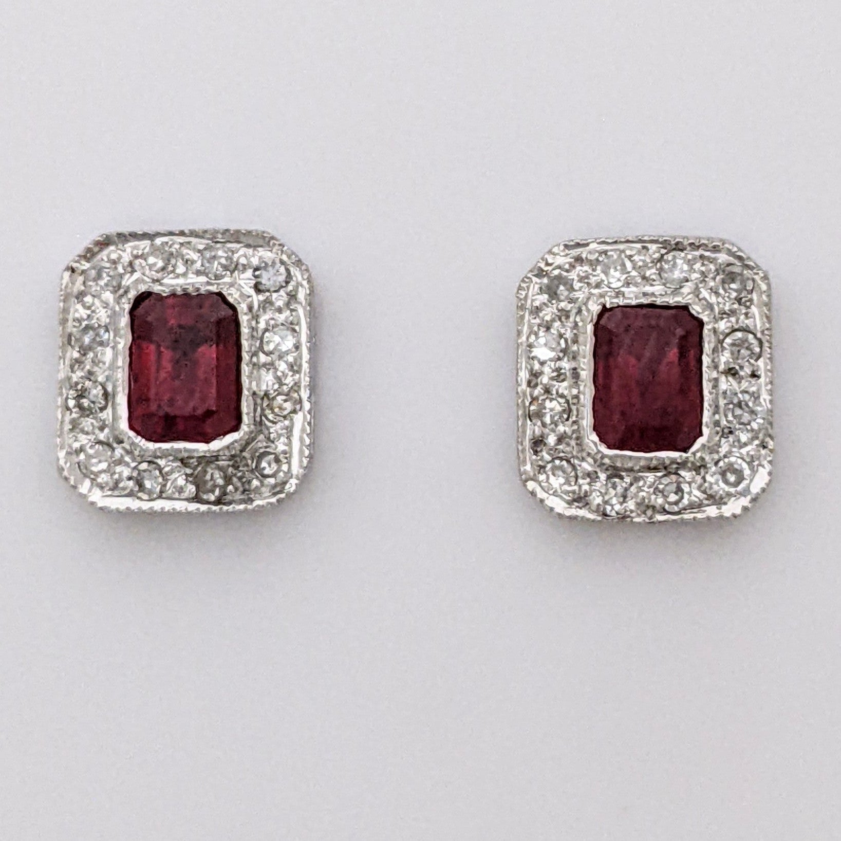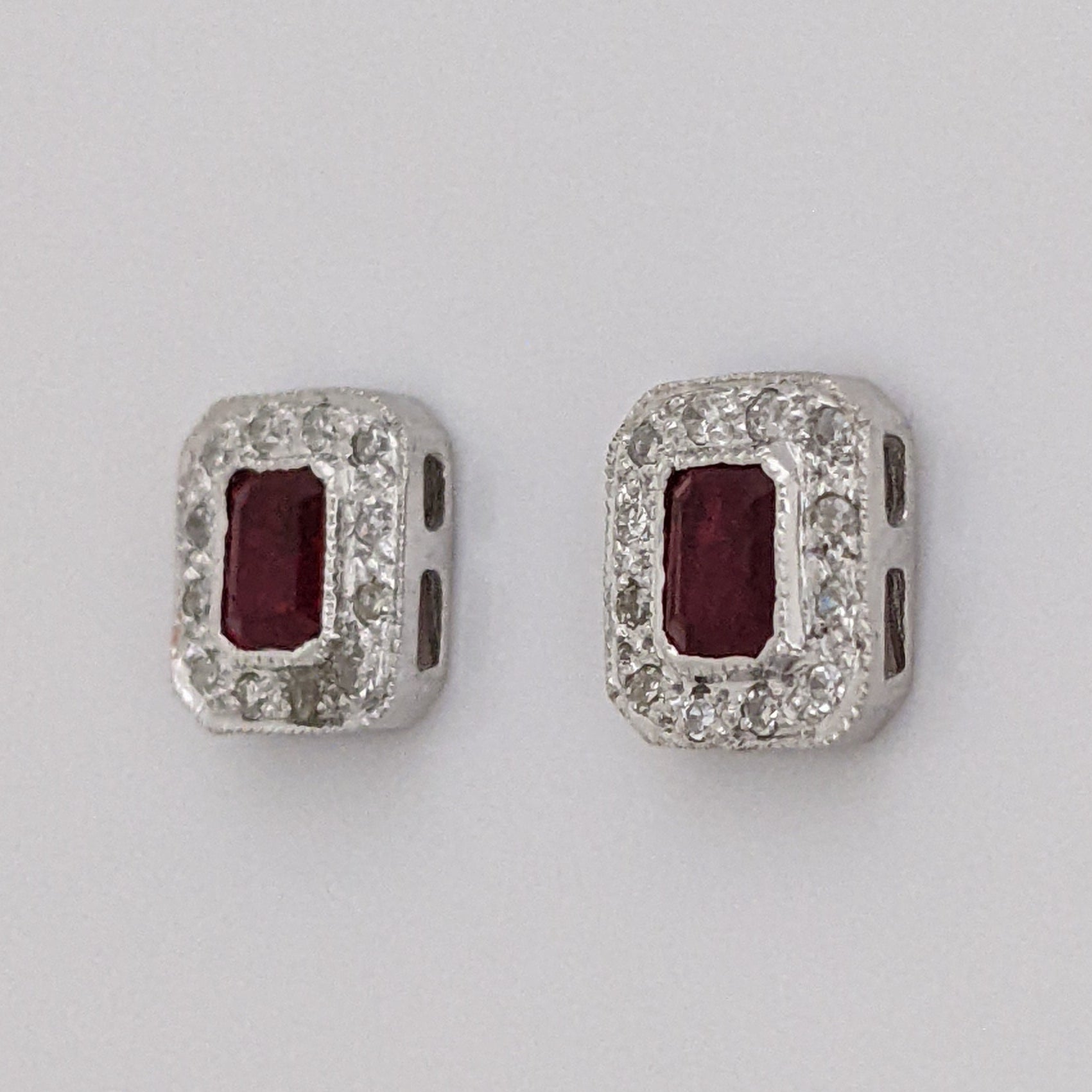 14K WHITE RUBY EMERALD CUT 3X4 WITH MELEE HALO FRAMED ESTATE EARRINGS 1.3 GRAMS
