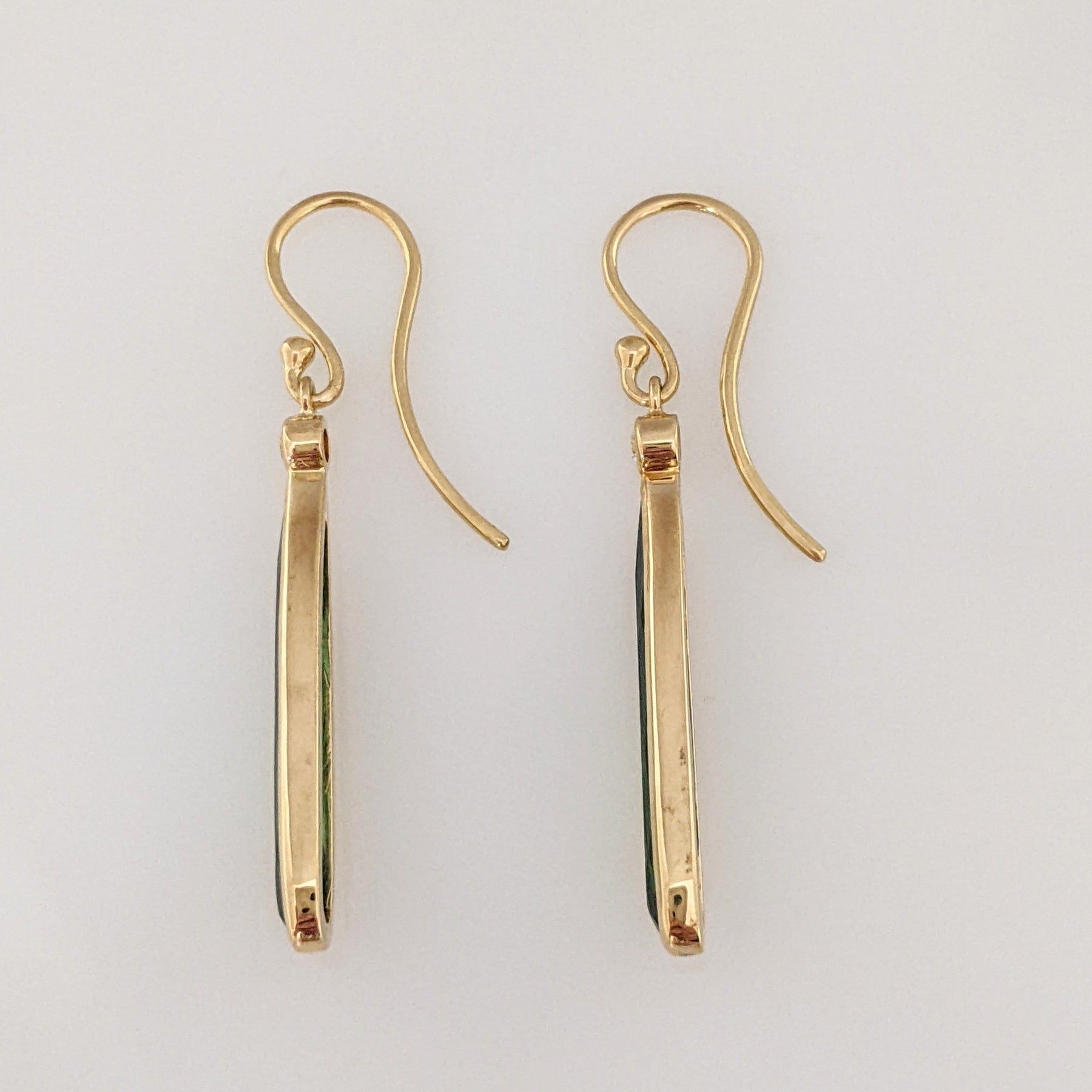18K GREEN TOURMALINE PEAR 4X23 WITH .10DTW (2) ESTATE DANGLE EARRINGS 5.1 GRAMS