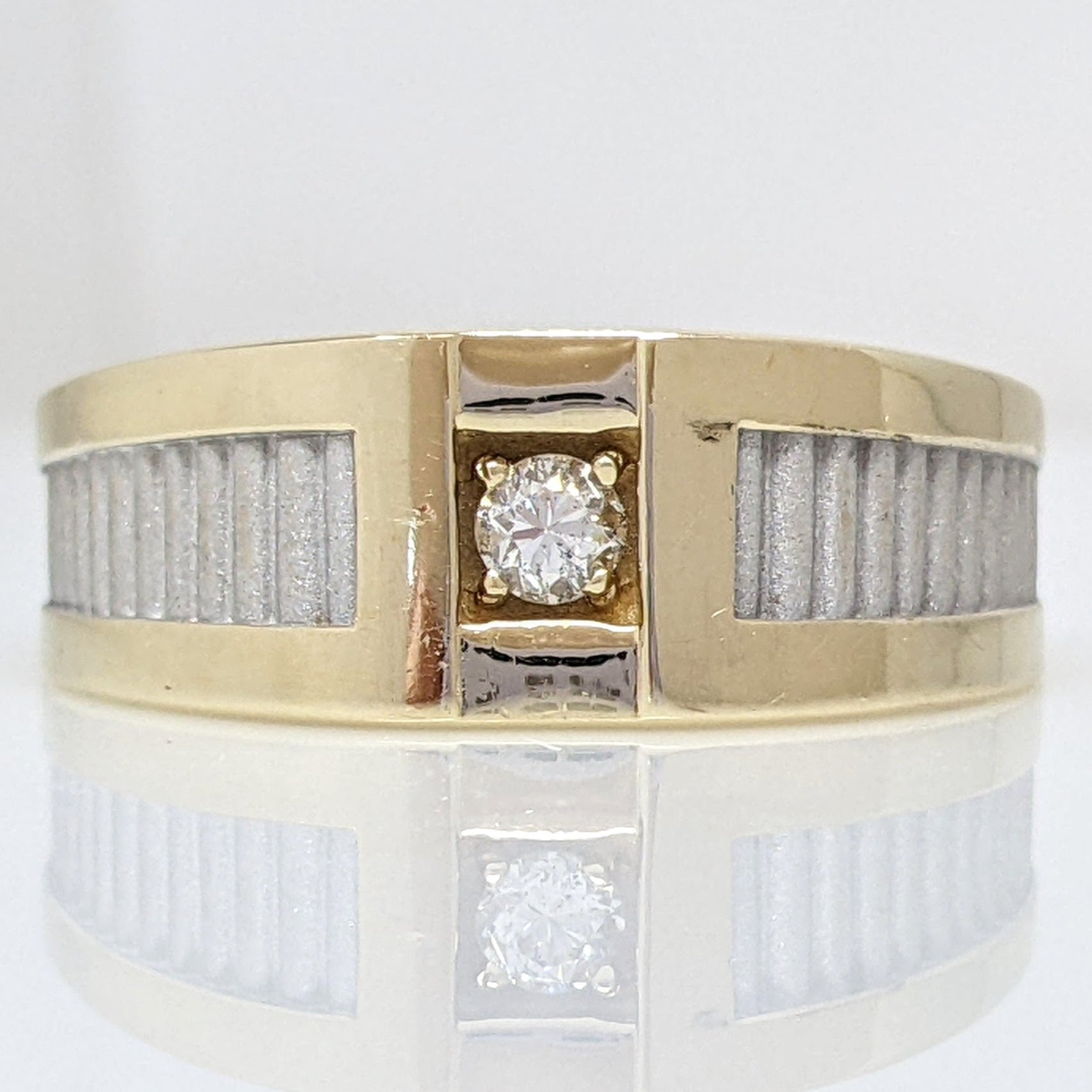 14K .10 CARAT TOTAL I1 I DIAMOND ROUND (1) RIBBED SIDES ESTATE RING 6.4 GRAMS