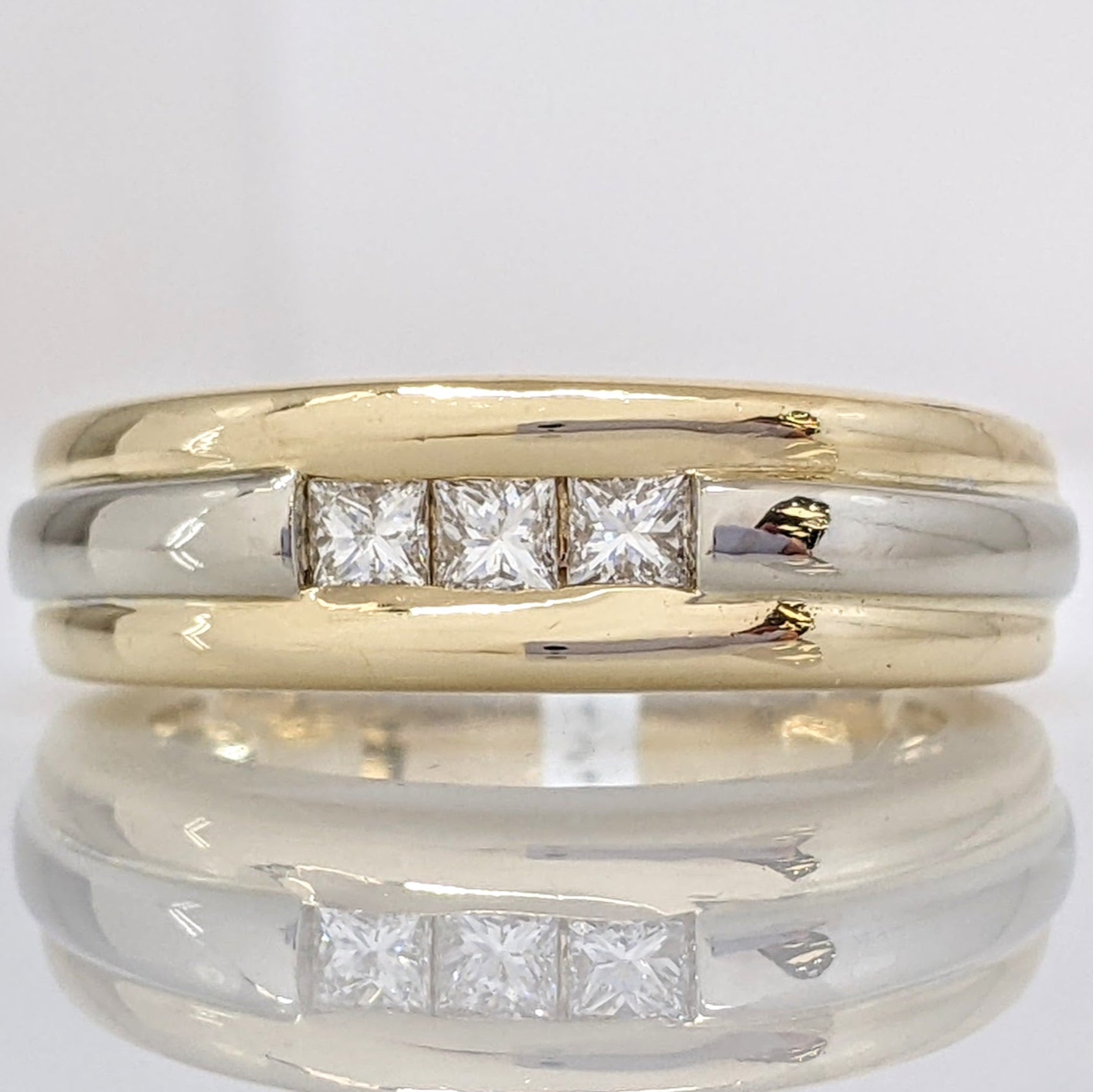 14K TWO-TONE .30 CARAT TOTAL WEIGHT SI2 G DIAMOND PRINCESS CUT (3) ESTATE CHANNEL BAND