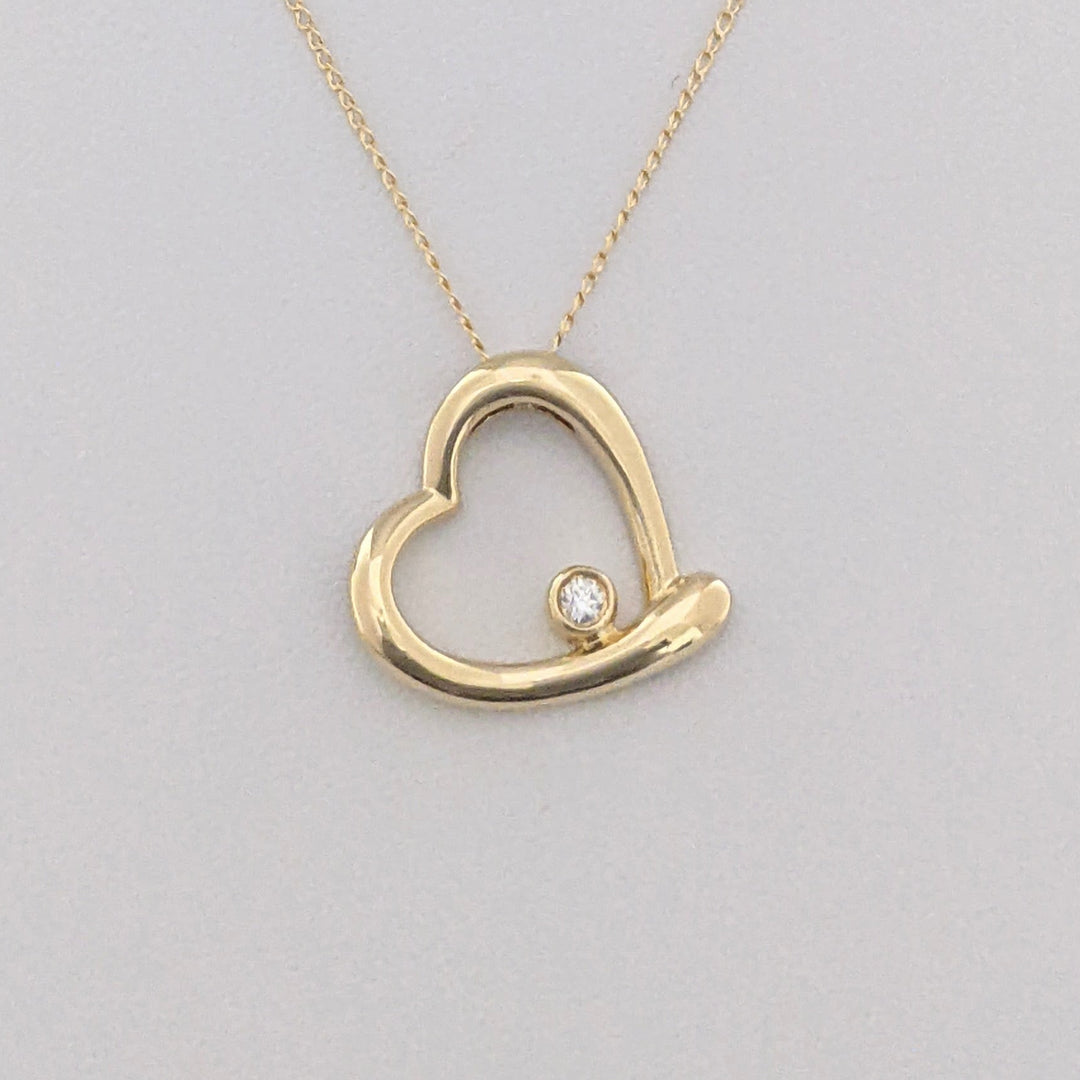 14K .03 CARAT TOTAL DIAMOND ROUND BEZEL OPEN HEART ESTATE PENDANT & CHAIN 3.0 GRAMS