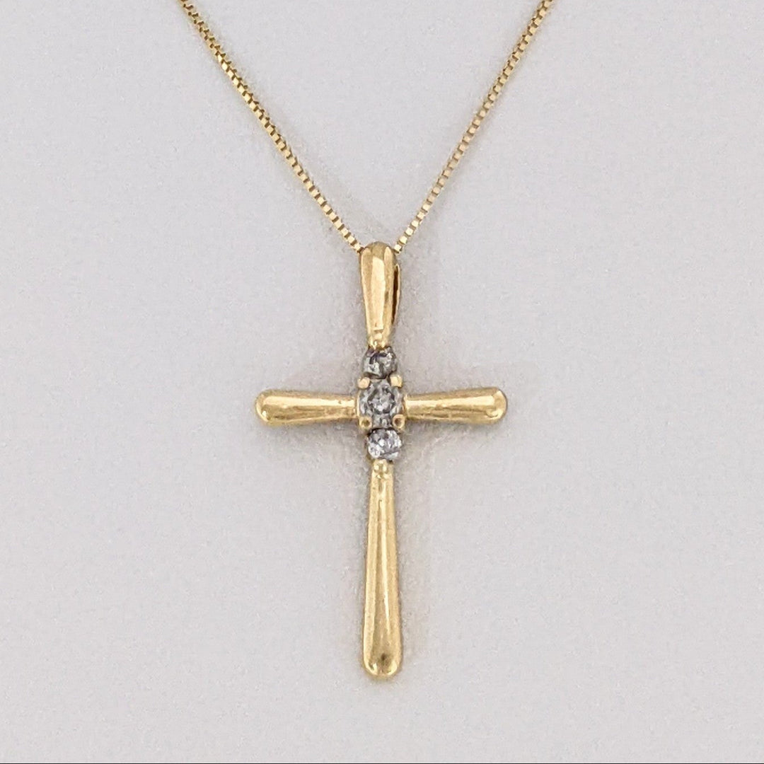 10K DIAMOND ROUND (3) ESTATE CROSS PENDANT & CHAIN 1.7 GRAMS