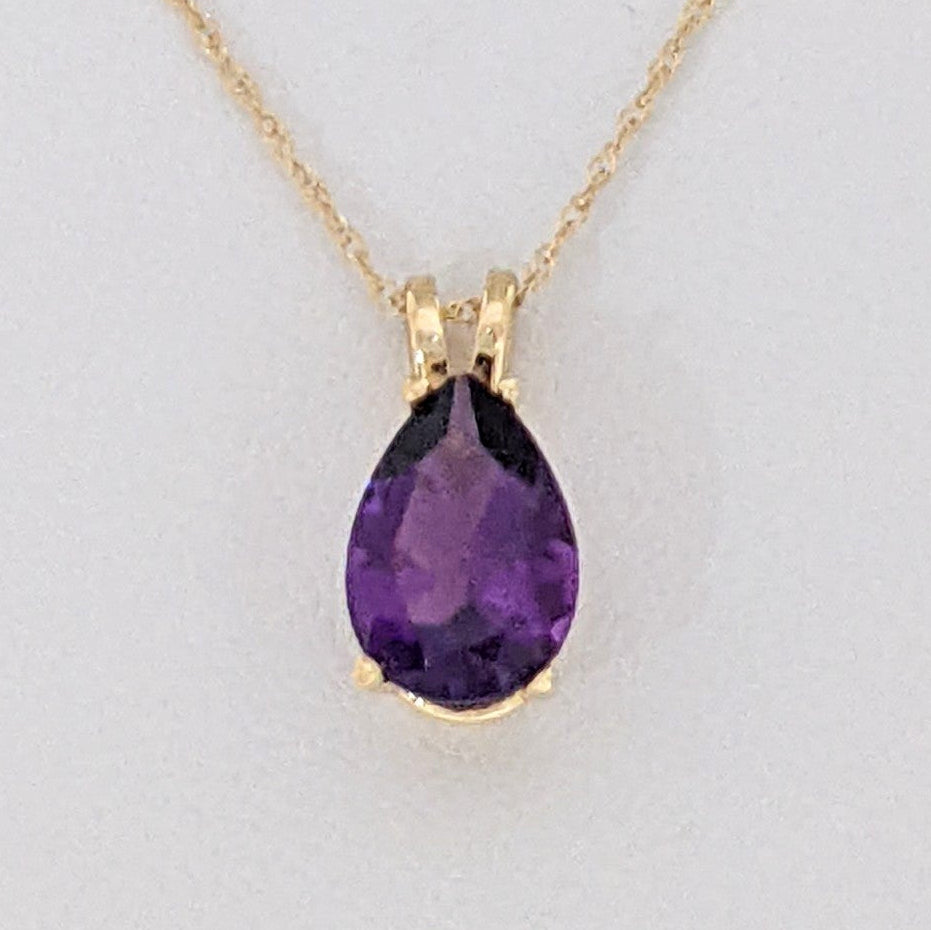 14K AMETHYST PEAR 7X10 ESTATE PENDANT & CHAIN 1.6 GRAMS