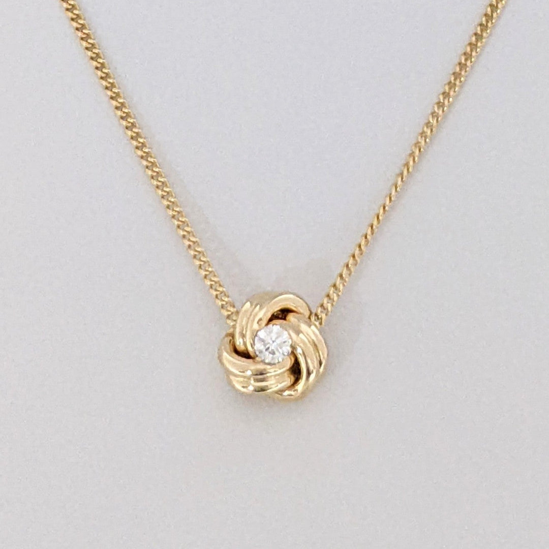 14K .15 CARAT TOTAL DIAMOND ROUND LOVE KNOT ESTATE PENDANT & CHAIN 3.9 GRAMS