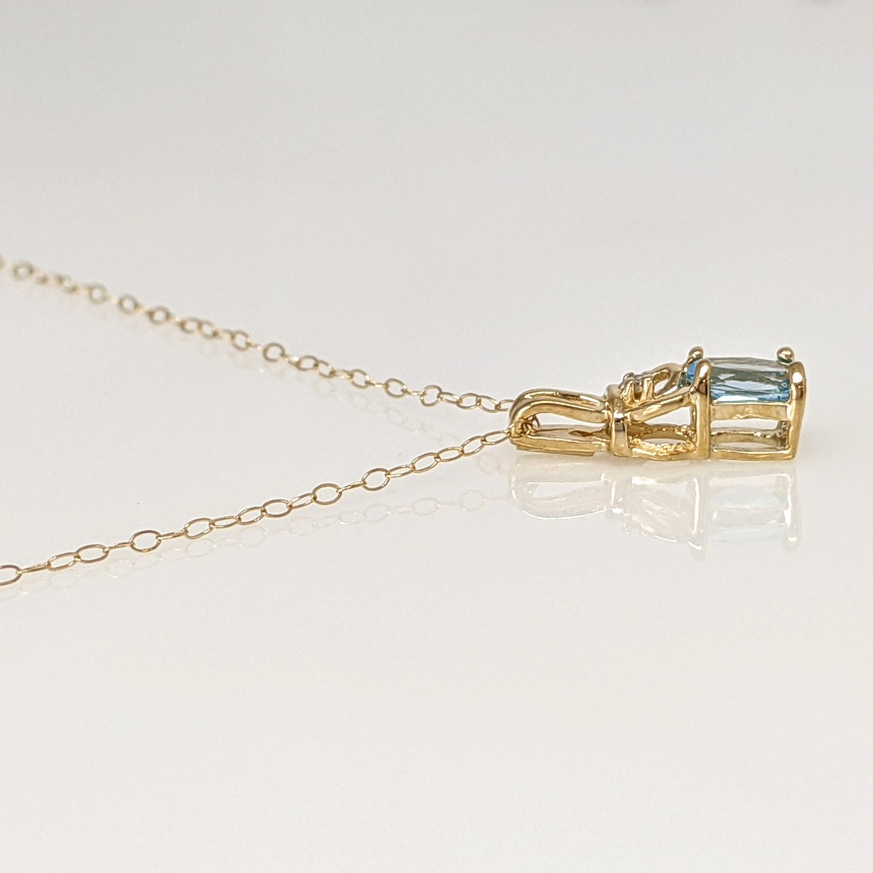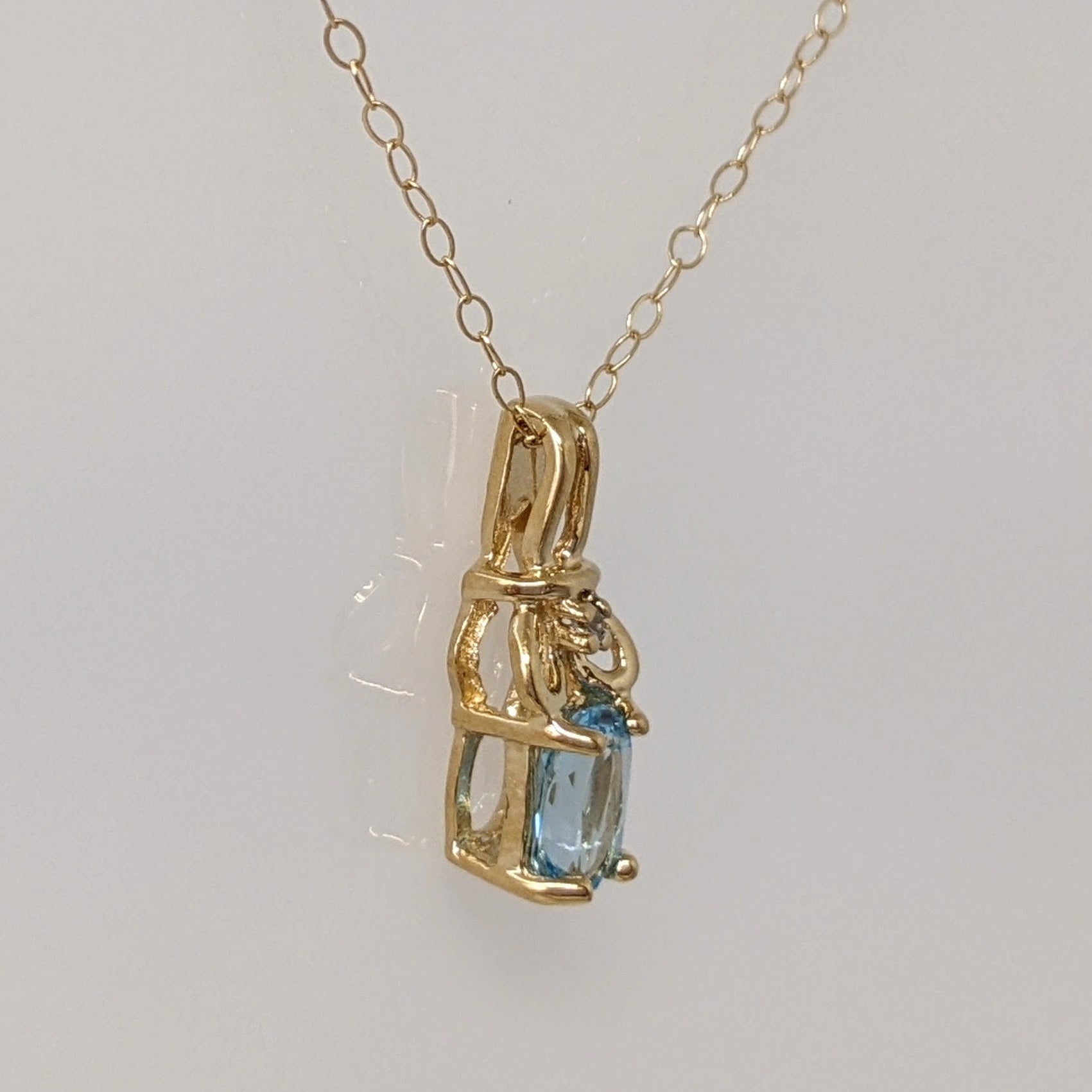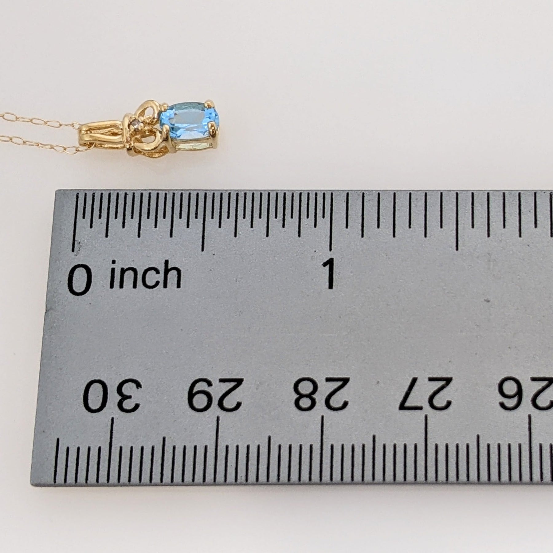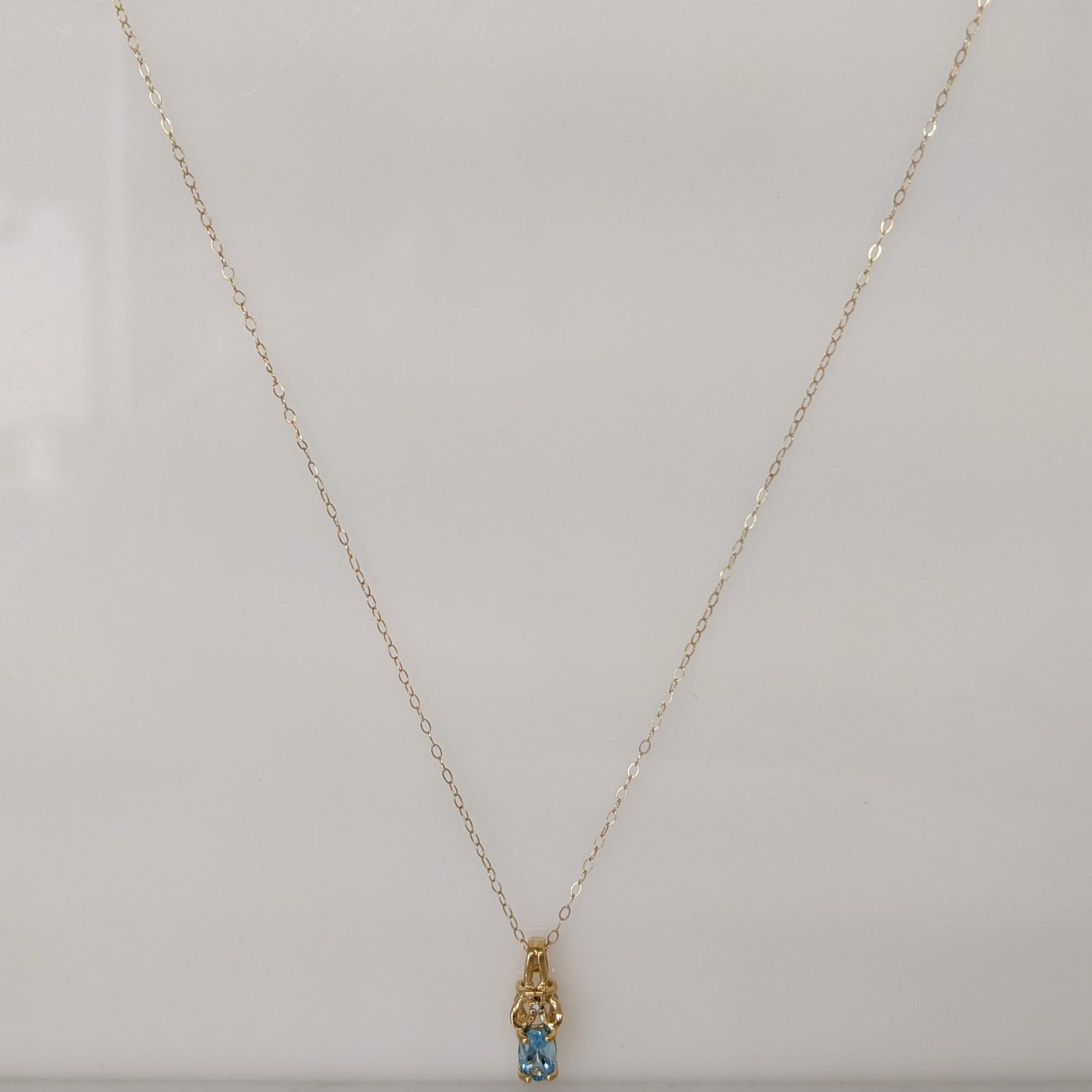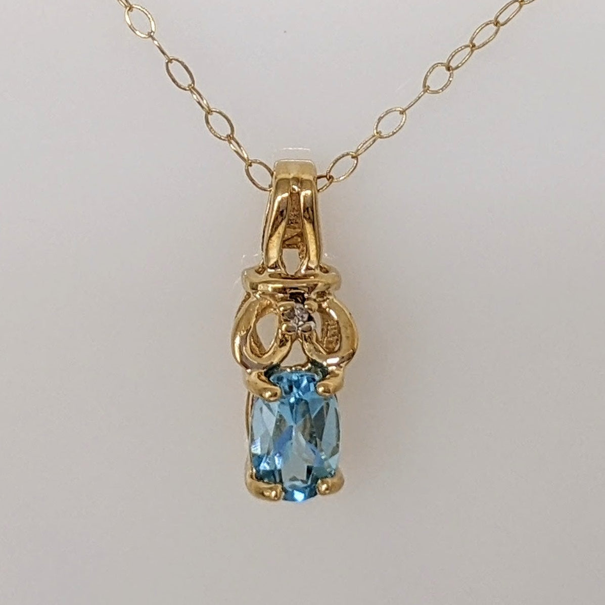 10K BLUE TOPAZ OVAL 4X6 WITH MELEE ESTATE PENDANT & CHAIN 1.1 GRAMS