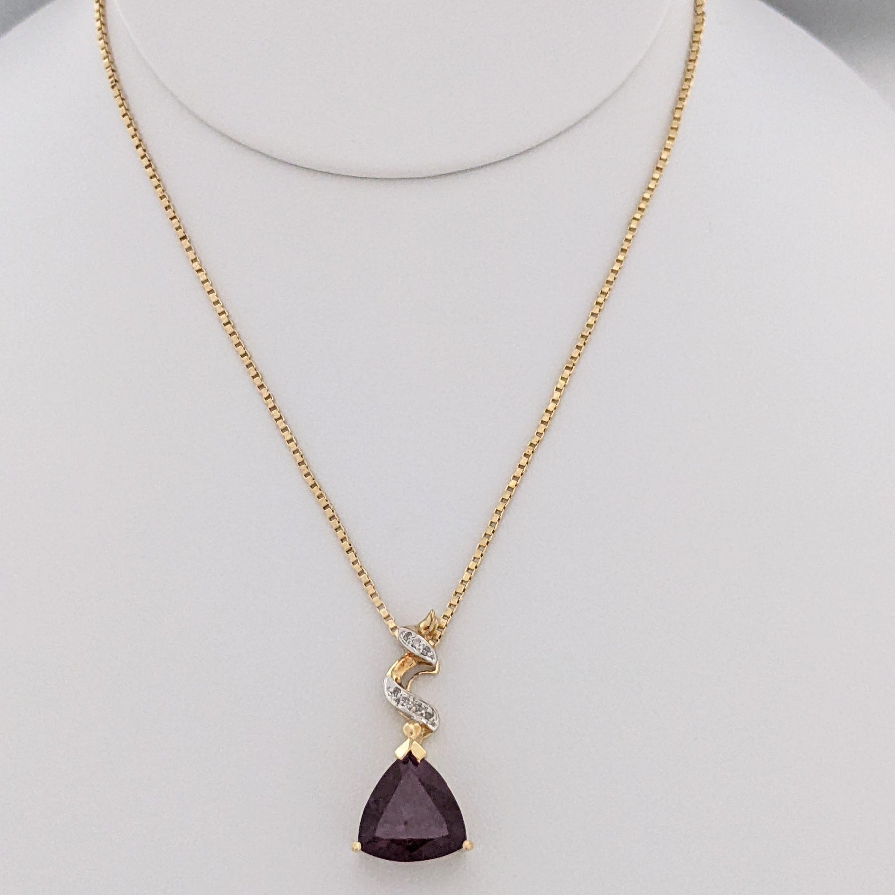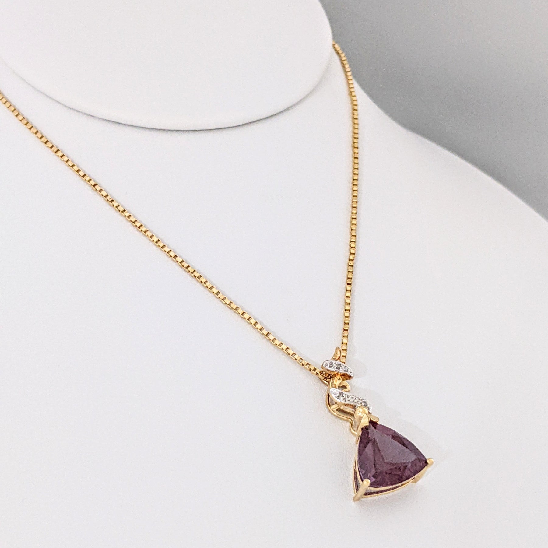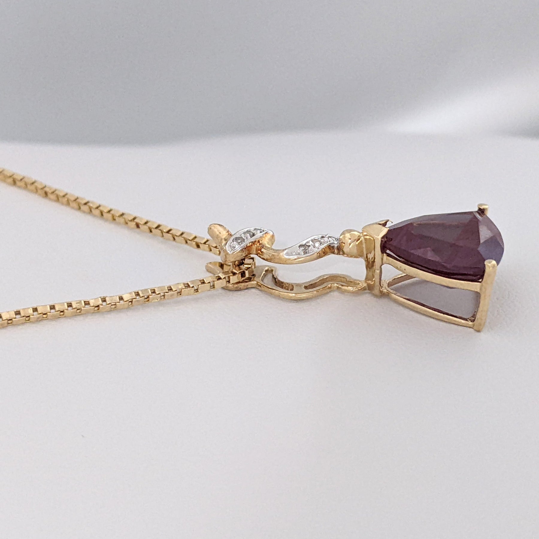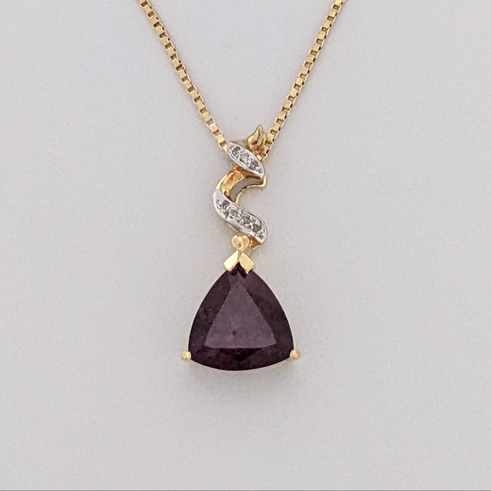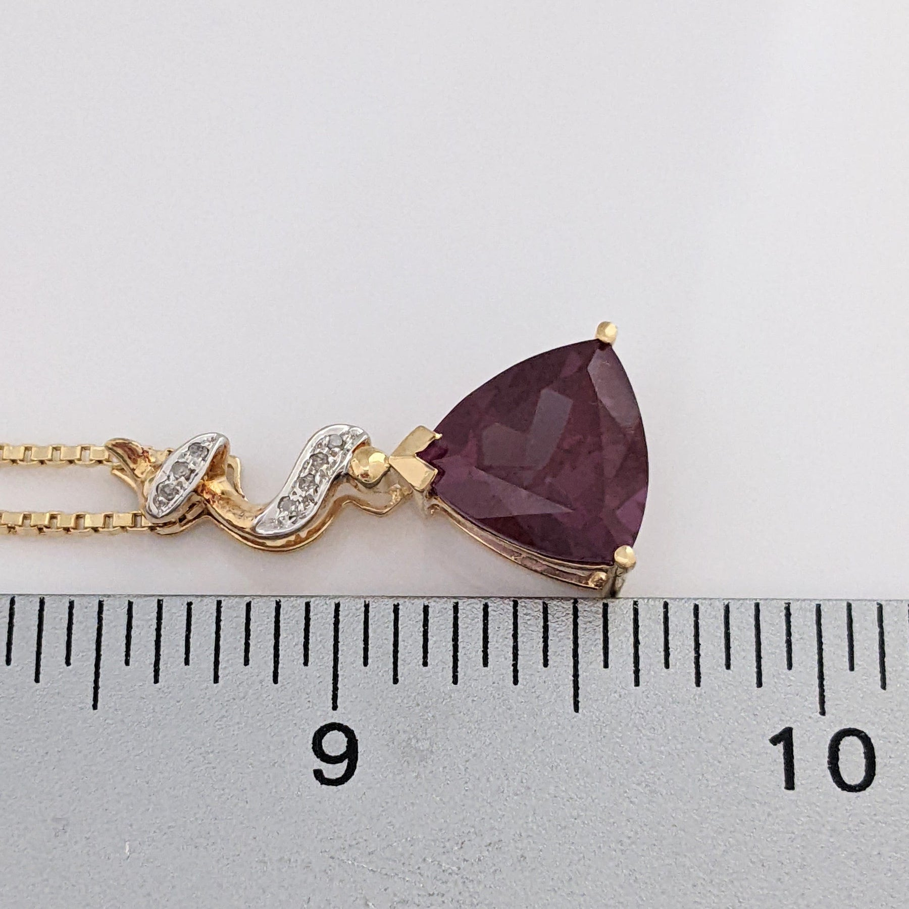 10K LAB-CREATED ALEXANDRITE TRILLION 12MM WITH (7) MELEE ESTATE PENDANT & 14K CHAIN 4.9 GRAMS