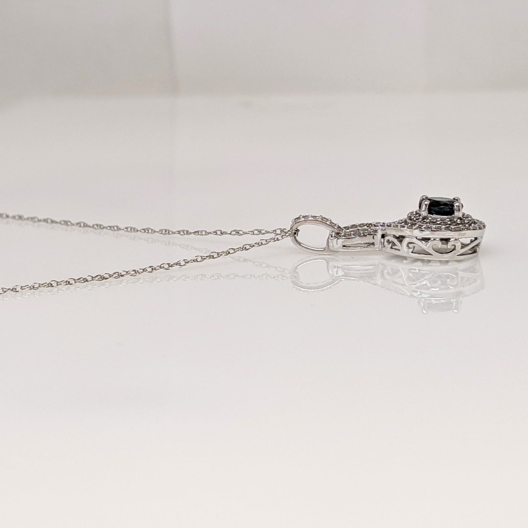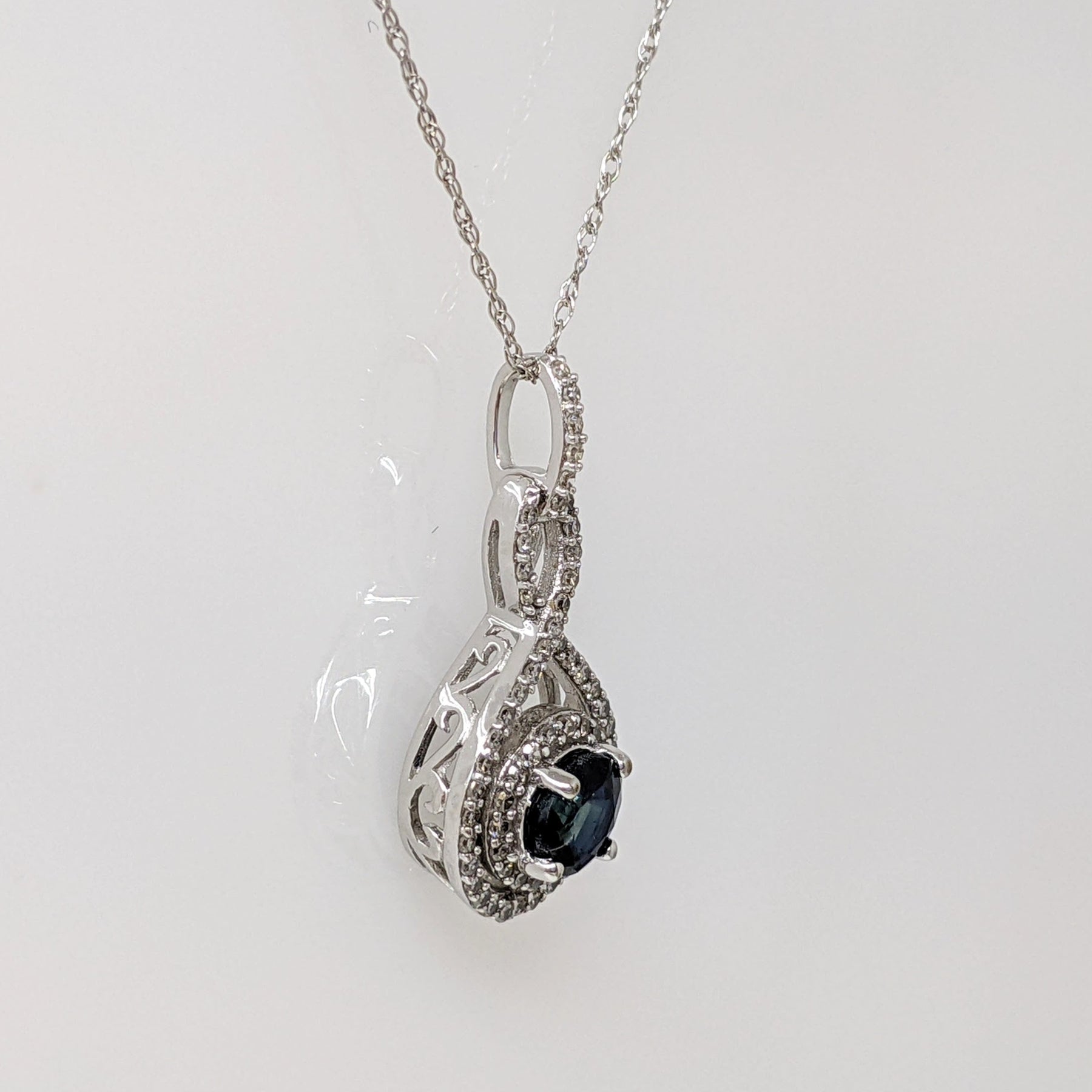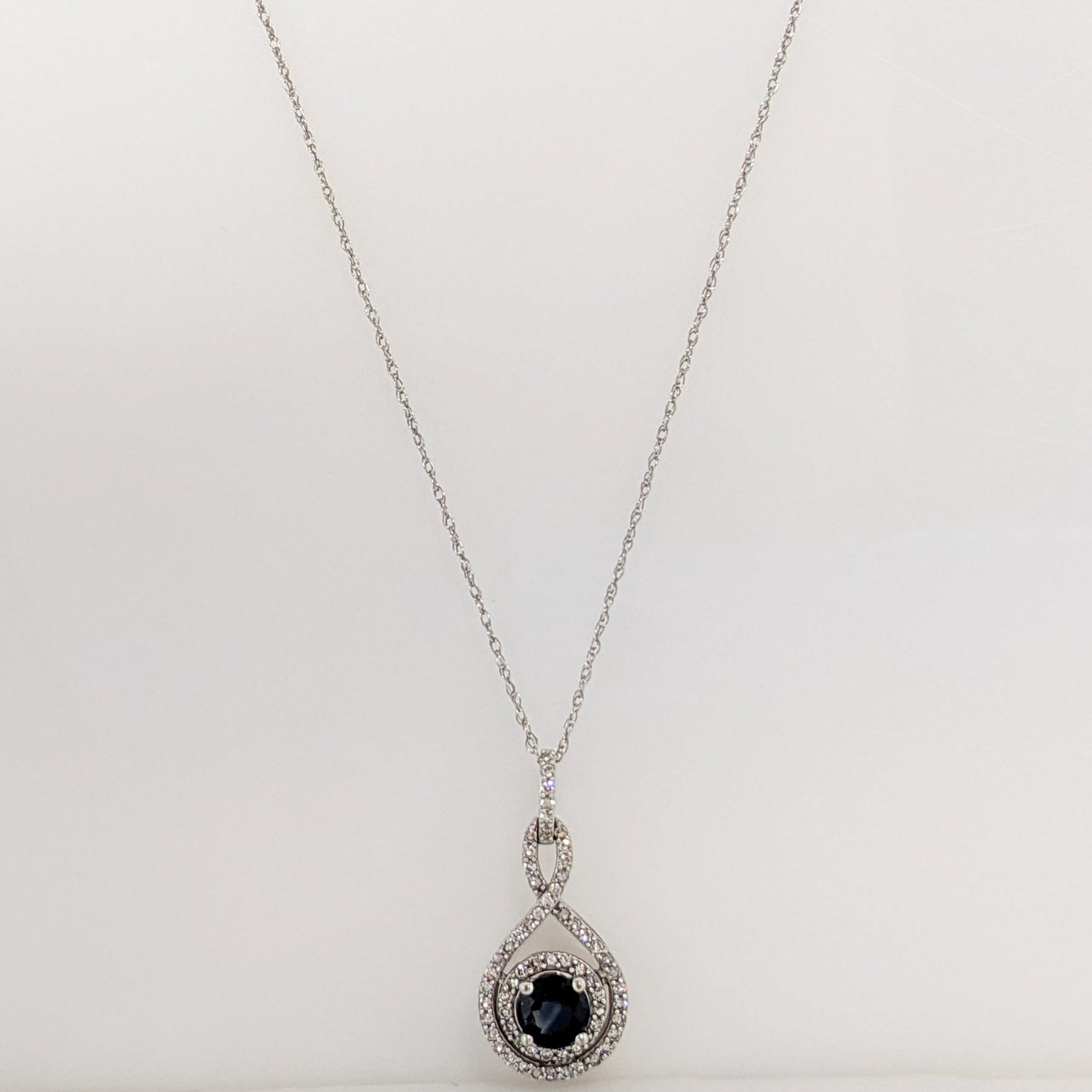 14K WHITE SAPPHIRE ROUND 5MM WITH .53 DIAMOND TOTAL WEIGHT TWIST ESTATE PENDANT & CHAIN 2.0 GRAMS
