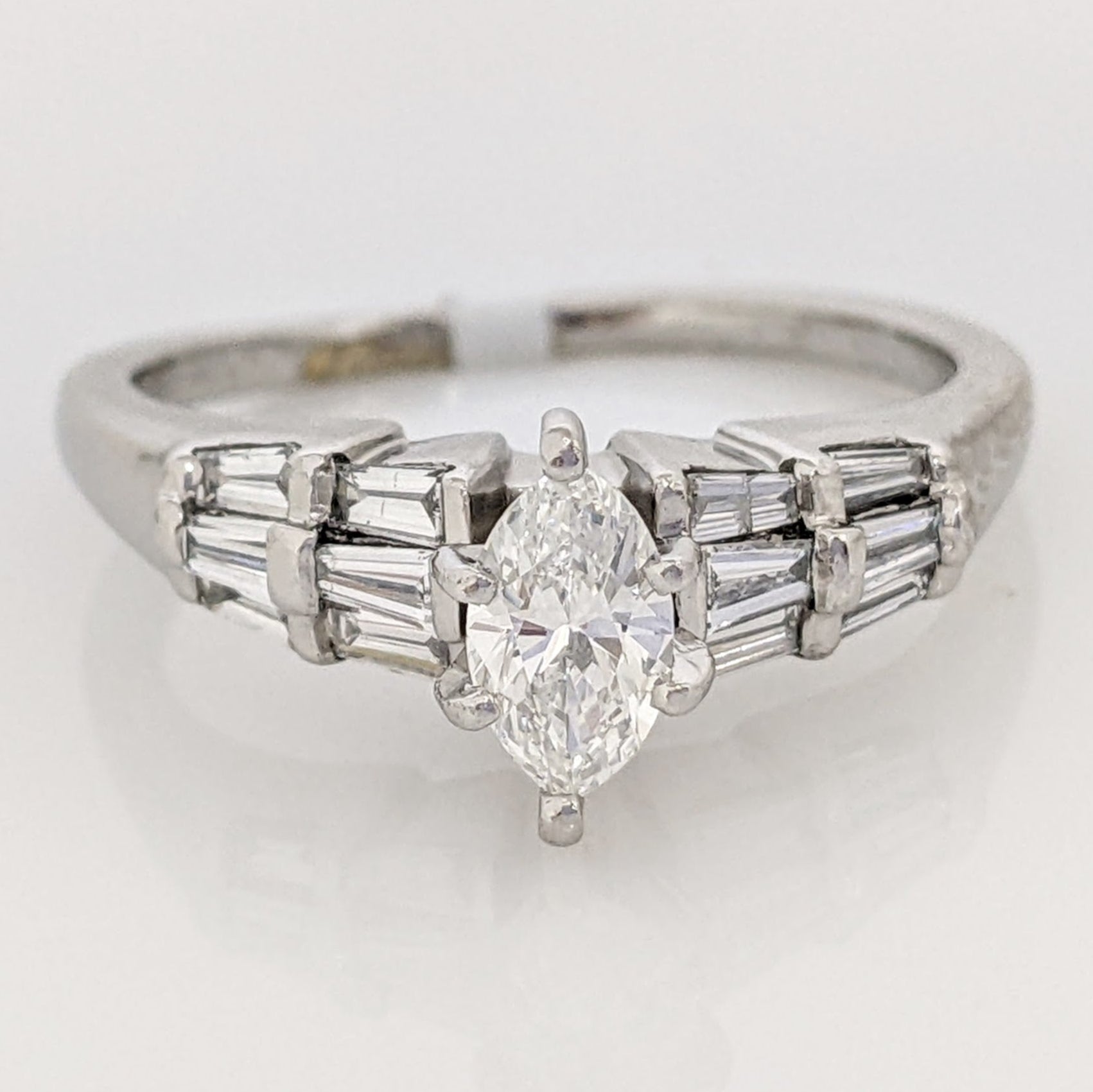 PLATINUM .62 CARAT TOTAL WEIGHT SI2 F DIAMOND MARQUISE (3) WITH BAGUETTE (8) ESTATE RING 6.1 GRAMS