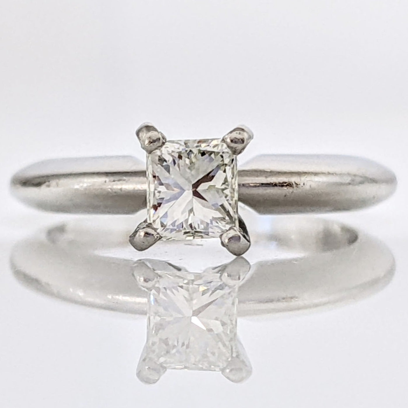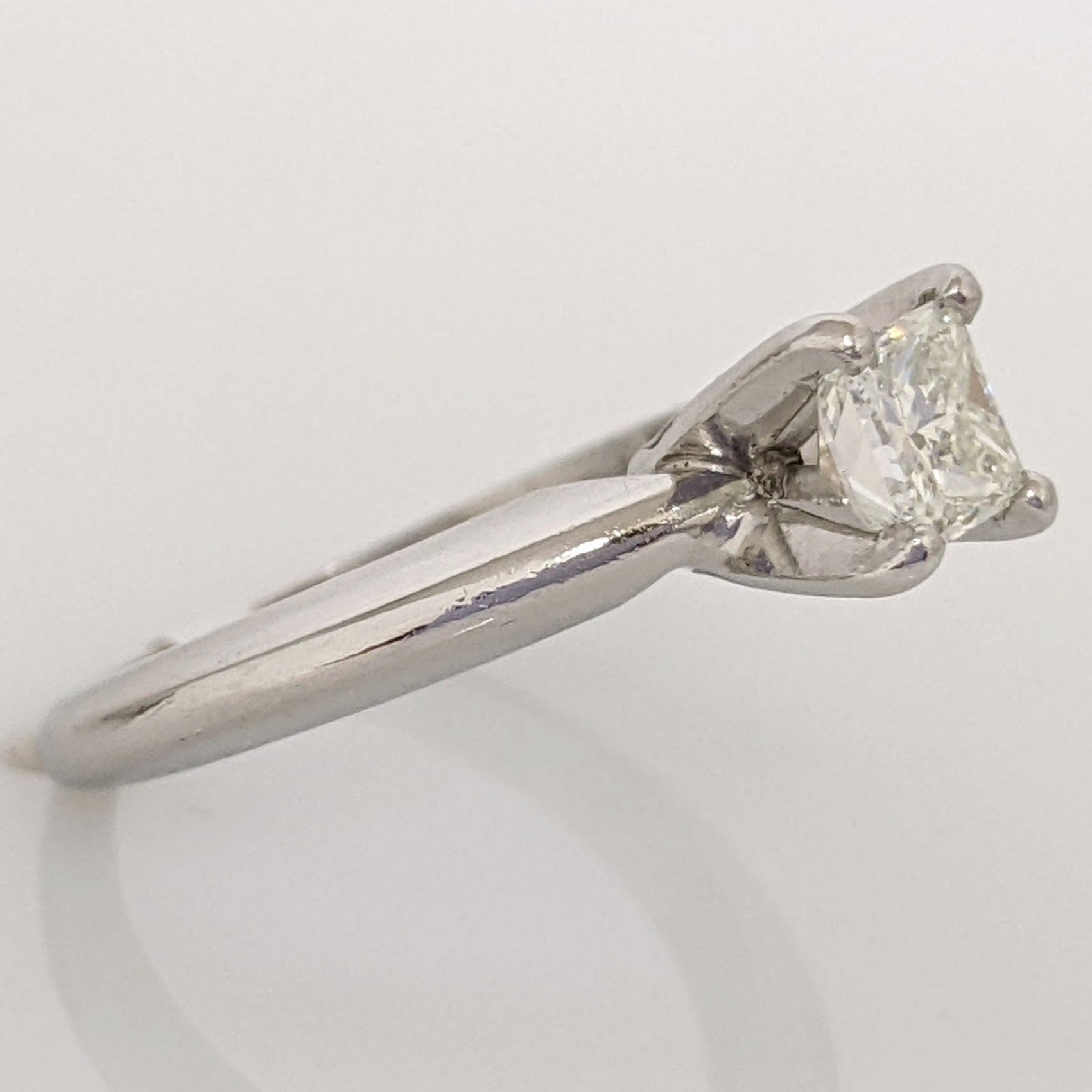 PLATINUM .46 CARAT TOTAL VS1 G DIAMOND PRINCESS CUT SOLITAIRE ESTATE RING 4.4 GRAMS
